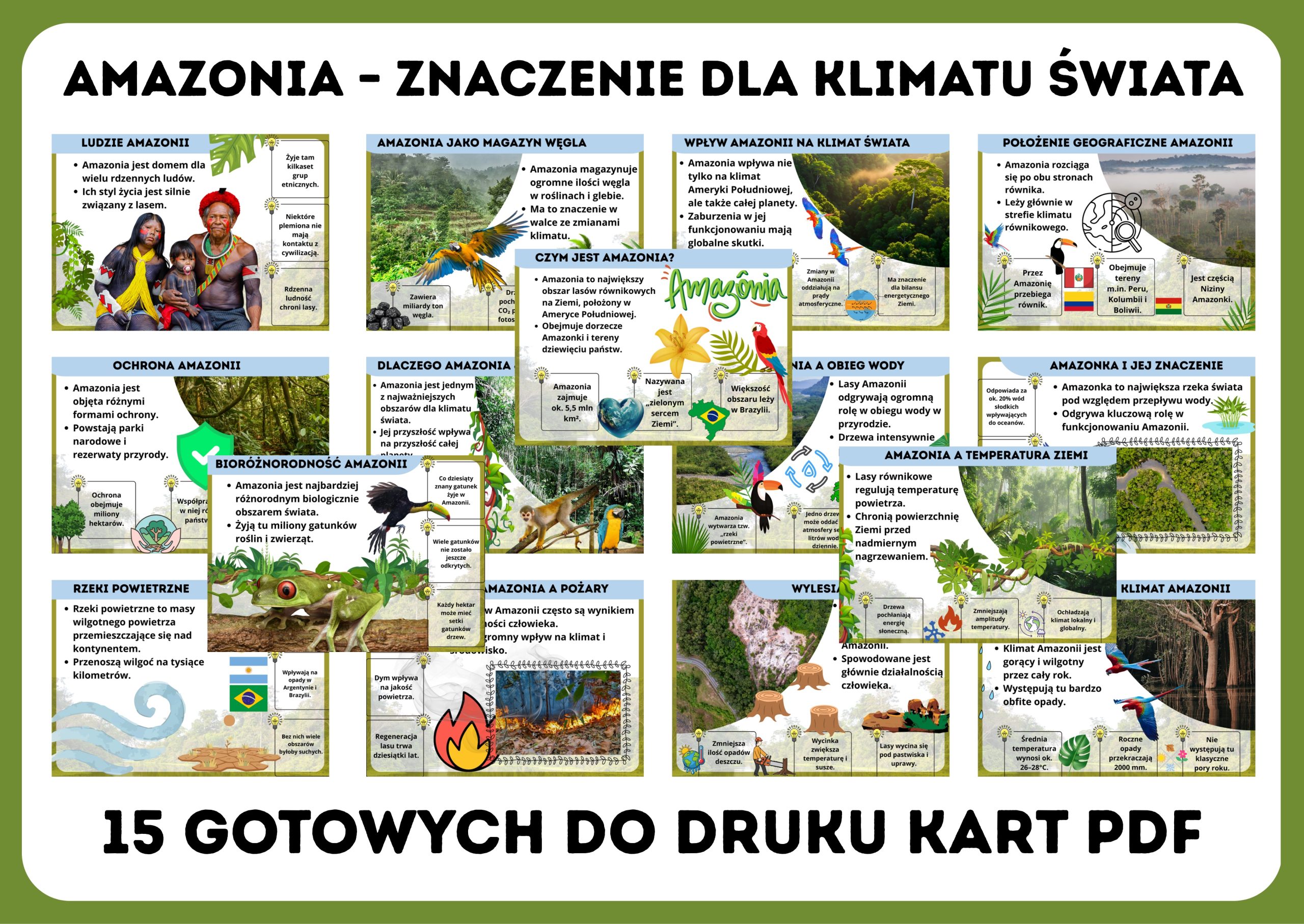 Aż 15 kart PDF pełnych ciekawostek, ilustracji i jasnych wyjaśnień pomoże uczniom zrozumieć, czym są „płuca świata”, jak lasy deszczowe regulują klimat oraz dlaczego ich ochrona jest tak ważna. Idealna propozycja do szkolnej gazetki, na lekcje przyrody, geografii i edukacji ekologicznej.