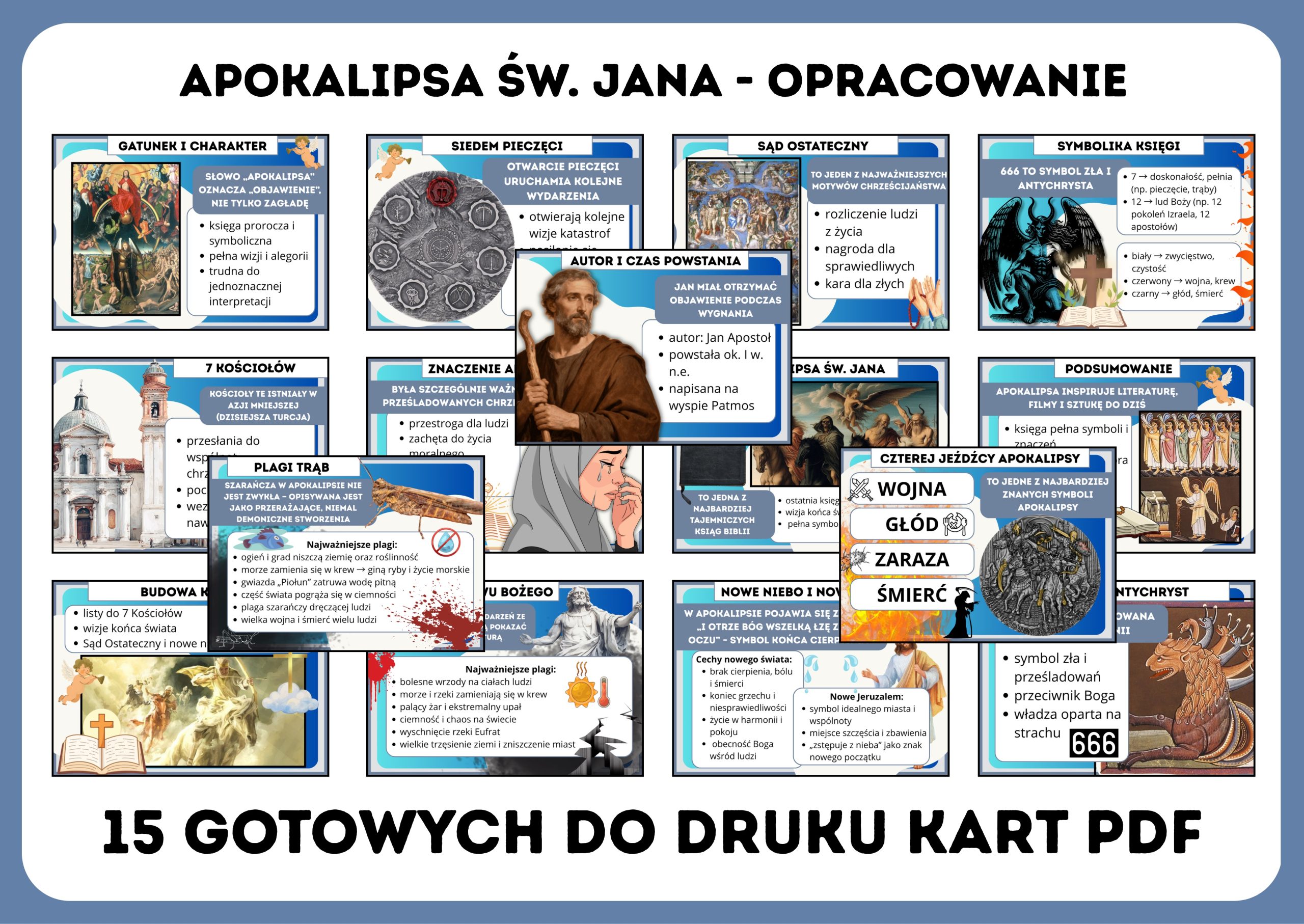 Poznaj jedno z najważniejszych dzieł biblijnych w przystępnej i atrakcyjnej formie! 📖 Nasza gazetka szkolna „Apokalipsa św. Jana” to aż 15 starannie przygotowanych kart w formacie PDF, które w ciekawy sposób przybliżają treść, symbole i znaczenie tej niezwykłej księgi.