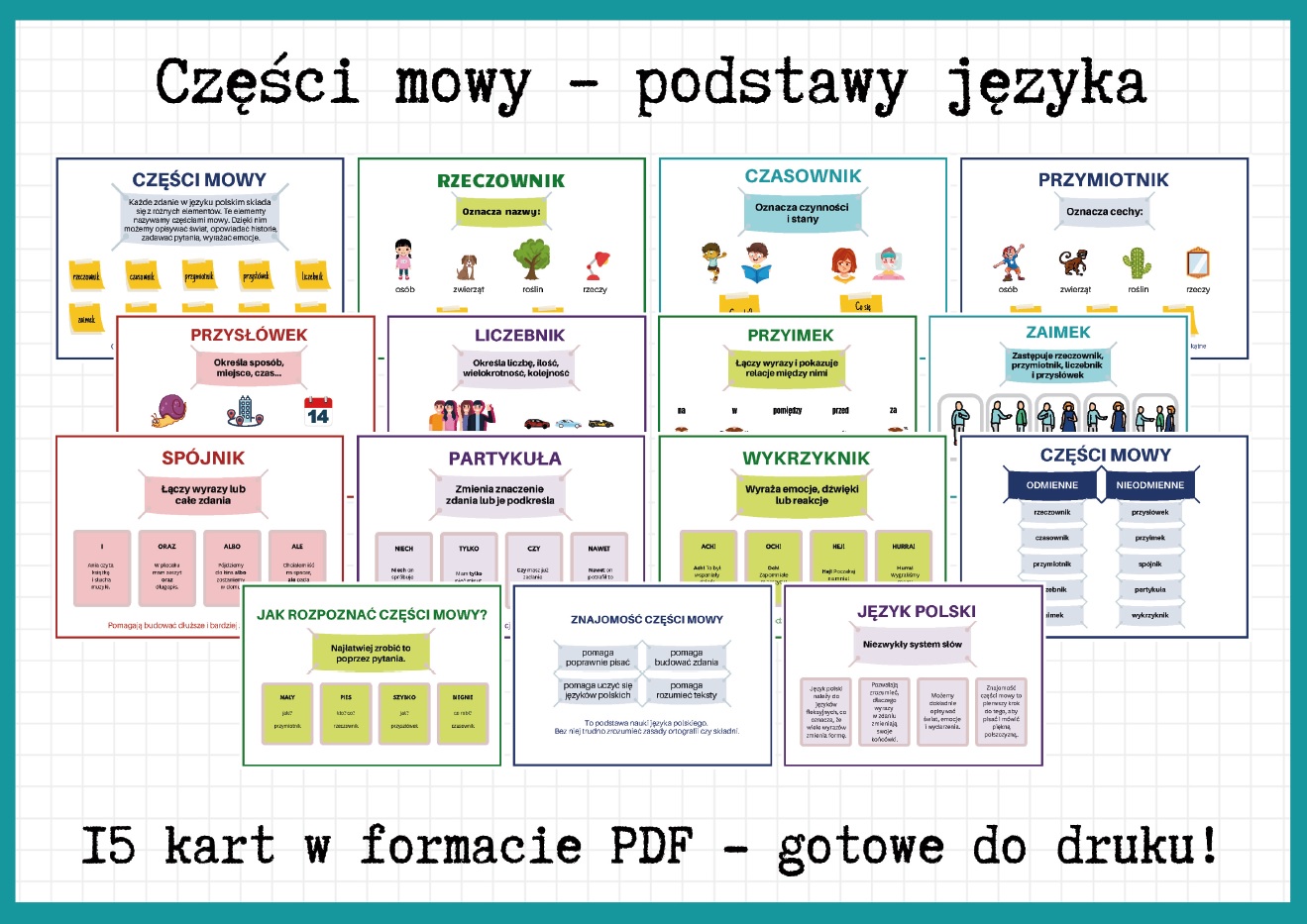 Przygotuj ciekawą i angażującą lekcję o częściach mowy dzięki naszej wyjątkowej gazetce szkolnej! To aż 15 starannie opracowanych kart w formacie PDF, które w prosty i przejrzysty sposób wyjaśniają najważniejsze zagadnienia językowe.