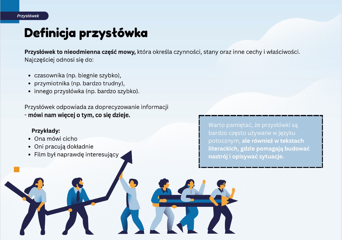 Przysłówek jest ważną częścią mowy, ponieważ sprawia, że wypowiedź staje się bardziej precyzyjna i bogatsza.