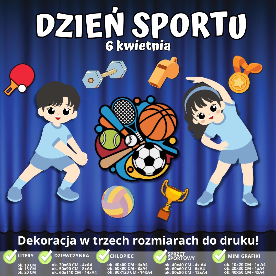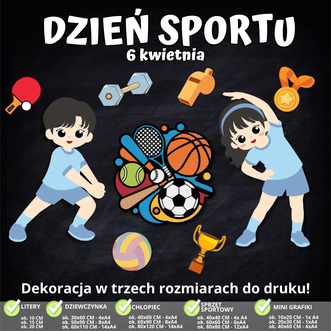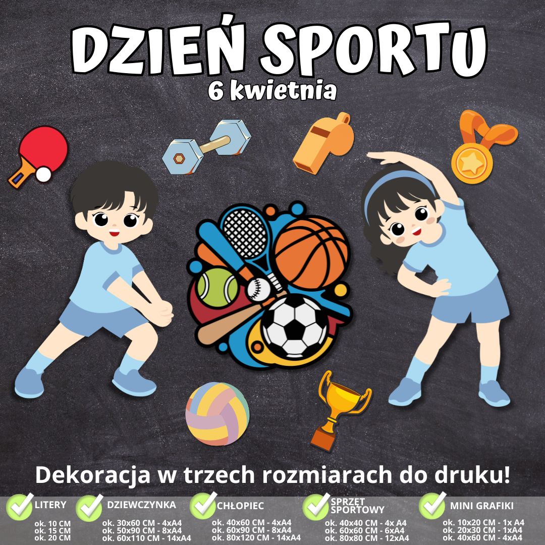 Wszystkie elementy dekoracji zostały opracowane tak, by można je było wygodnie wydrukować na kartkach formatu A4. Materiały podzielono na 3 zestawy, dzięki czemu z łatwością przygotujesz zarówno mniejszą gazetkę ścienną, jak i dużą dekorację do sali gimnastycznej, holu lub na szkolny korytarz.