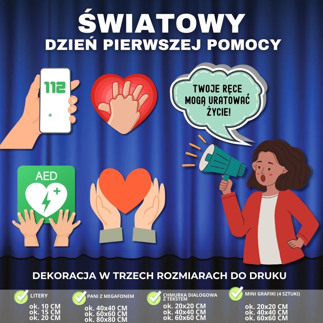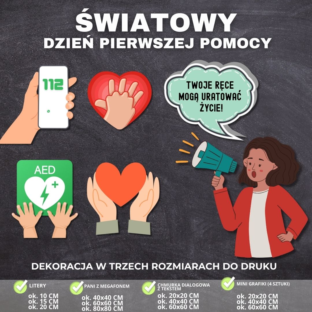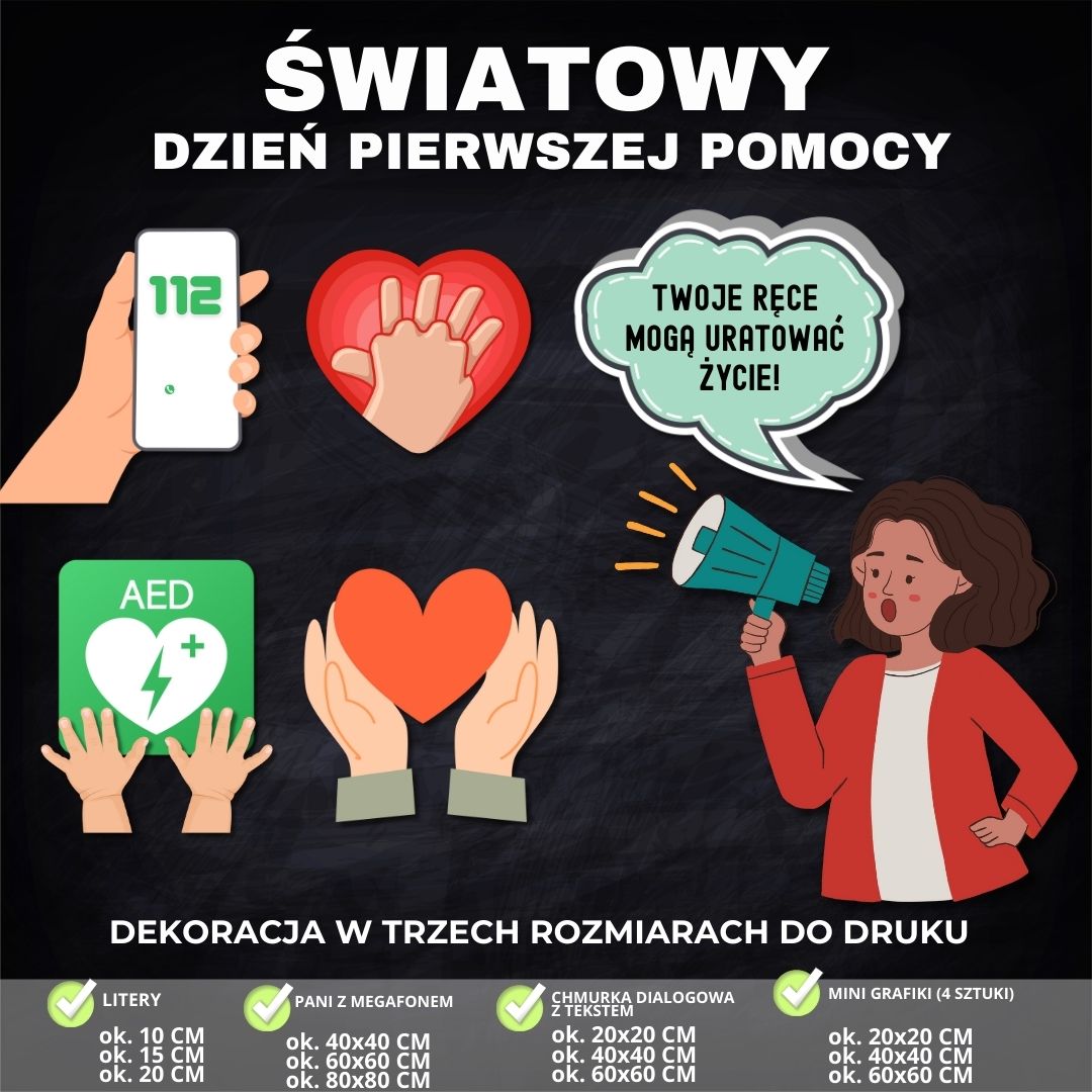 - chmurka dialogowa z hasłem – ok. 40 × 40 cm (4 stronie A4),