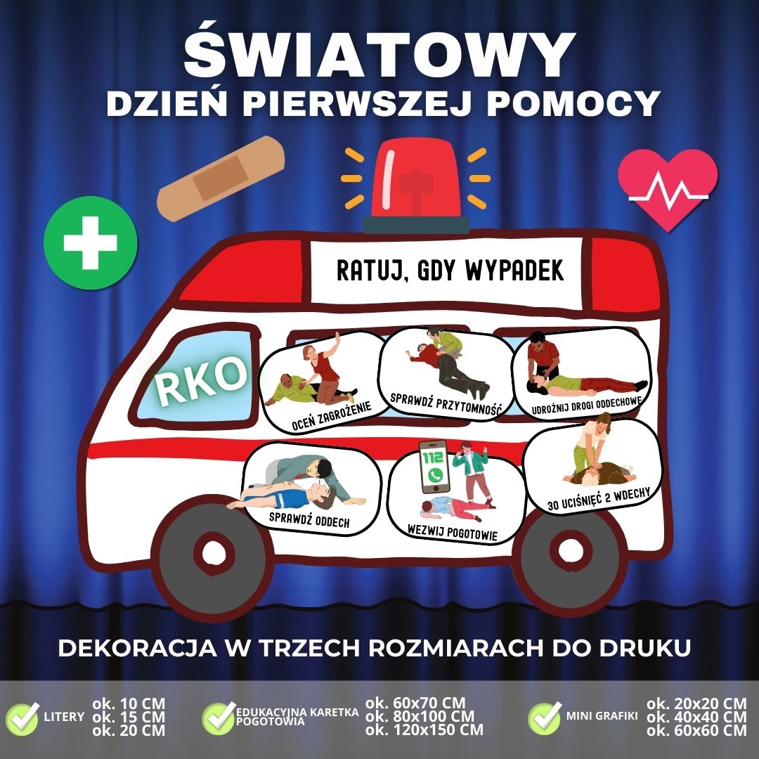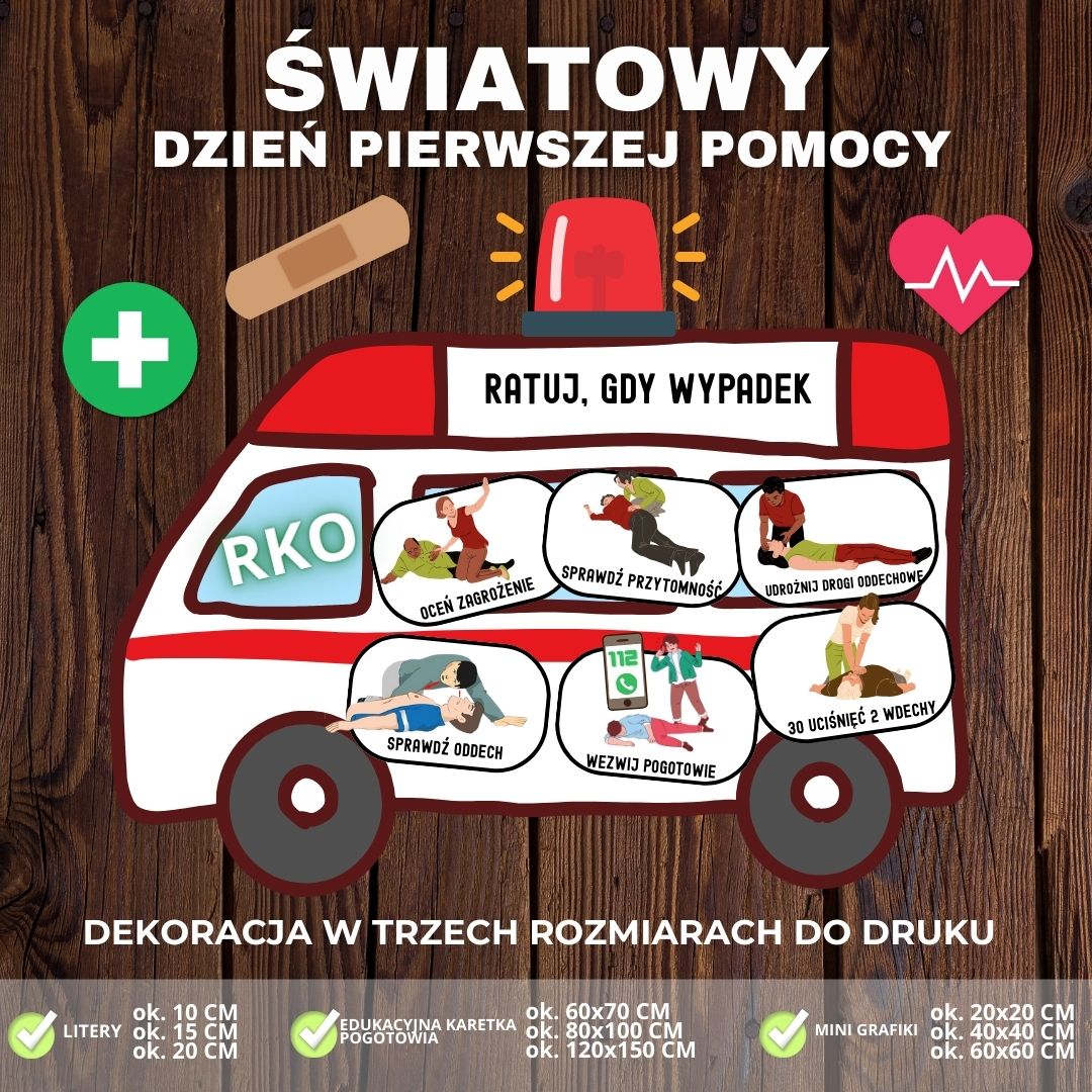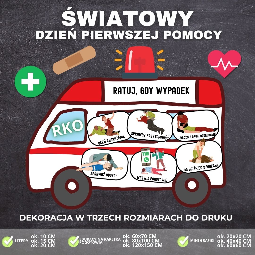 🚑✨ Wyjątkowa dekoracja edukacyjna na Światowy Dzień Pierwszej Pomocy! ✨🚑 Chcesz przygotować atrakcyjną i jednocześnie praktyczną gazetkę szkolną? Nasza dekoracja w formacie PDF sprawdzi się doskonale w klasie i na szkolnym korytarzu!