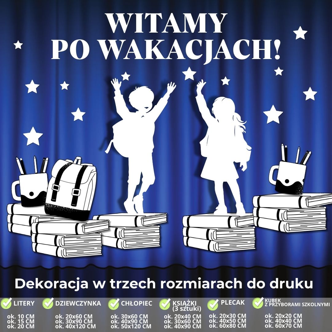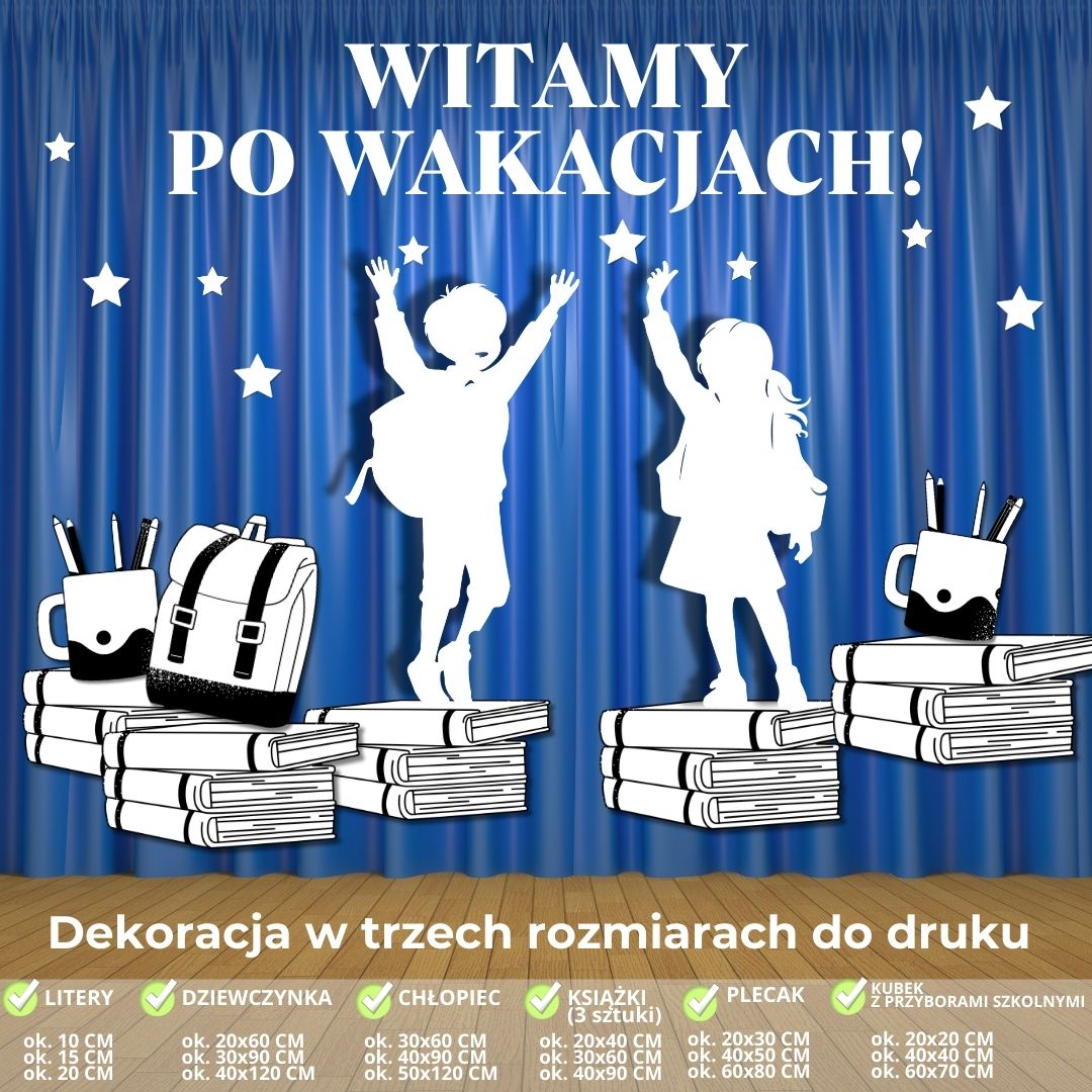 Wszystkie elementy przygotowane są do druku na kartkach formatu A4. Materiały podzielone zostały na trzy zestawy, z których stworzysz zarówno mniejszą gazetkę, jak i większą dekorację (w zależności od potrzeb oraz ilości miejsca, jaką masz do dyspozycji w swojej sali czy na korytarzu szkolnym).