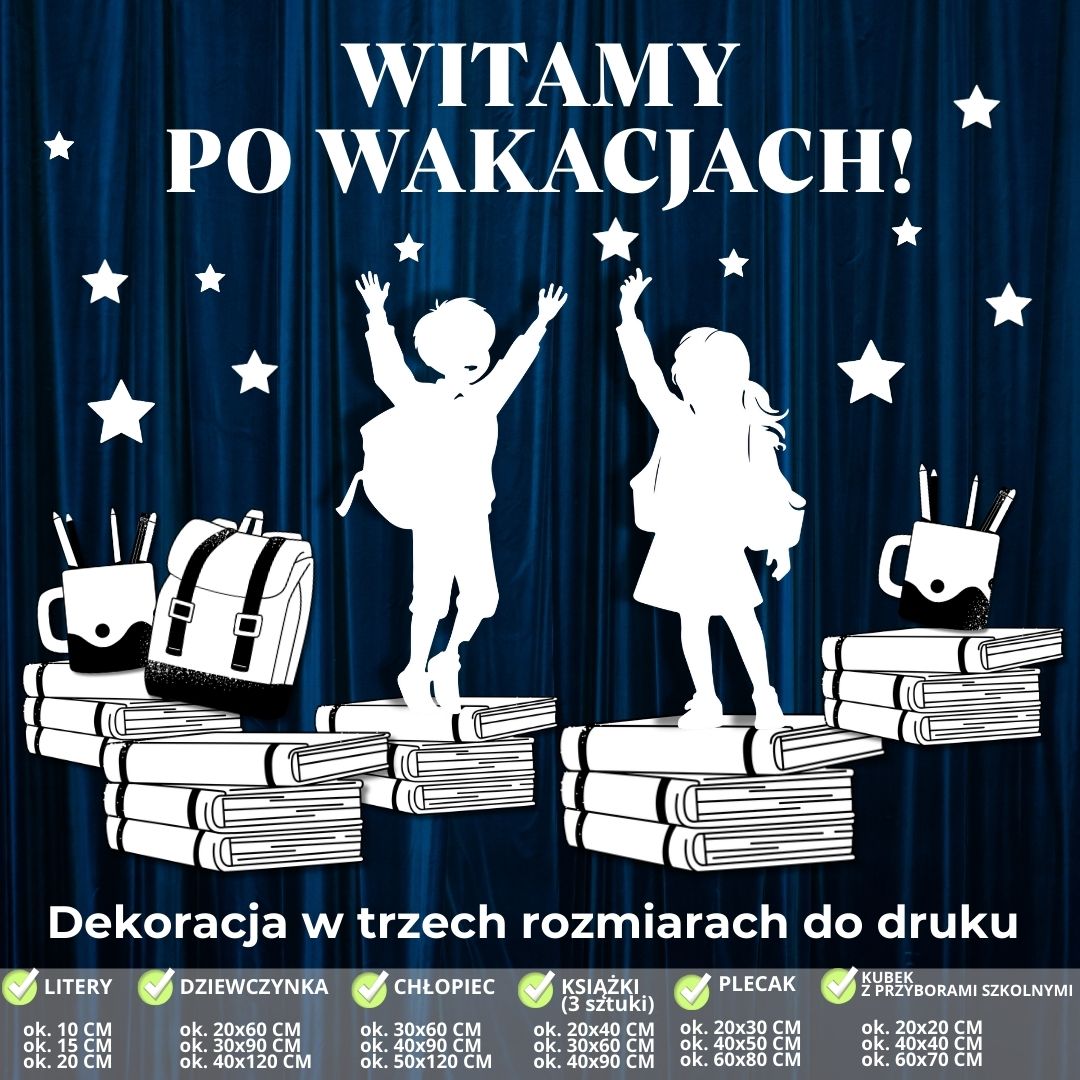 - kubek z przyborami szkolnymi – ok. 60 × 70 cm (9 stron A4),