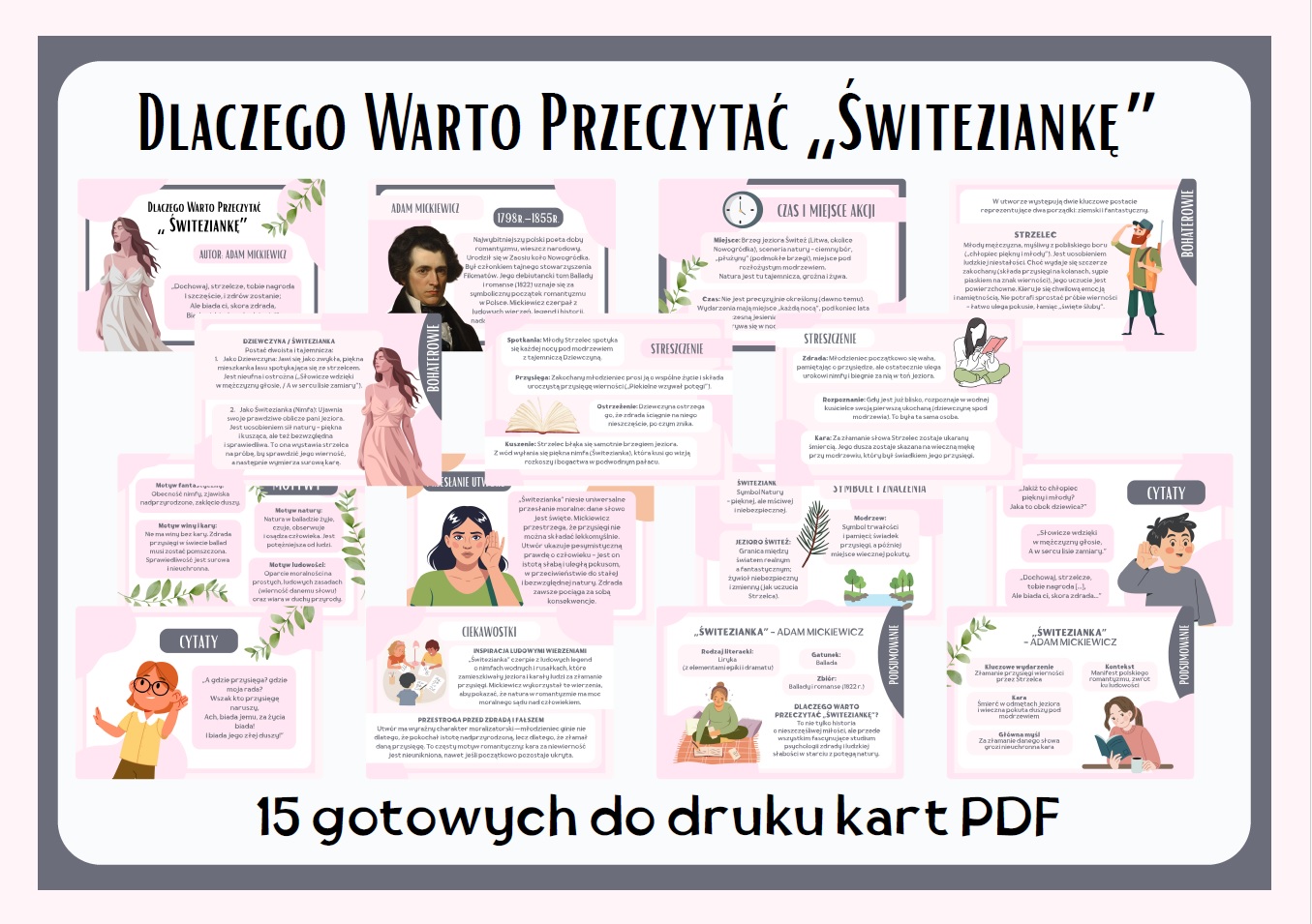 Nasza najnowsza gazetka szkolna: Dlaczego warto przeczytać Świteziankę – to aż 15 stronnicowy materiał w którym zamieściliśmy najważniejsze informacje na temat książki. 📌 Idealna gazetka do wykorzystania w bibliotece szkolnej, na korytarzu lub w klasie – szczególnie podczas omawiania utworu!
