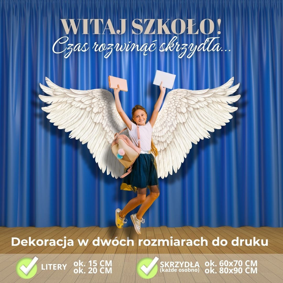 Duże skrzydła – WITAJ SZKOŁO! – fotobudka – dekoracja w 2 rozmiarach