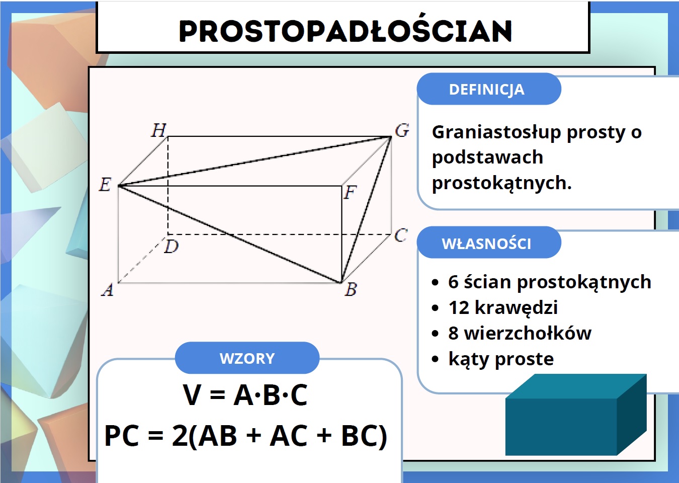 To praktyczny materiał, który ułatwi utrwalenie wiedzy i zainteresuje uczniów geometrią przestrzenną.