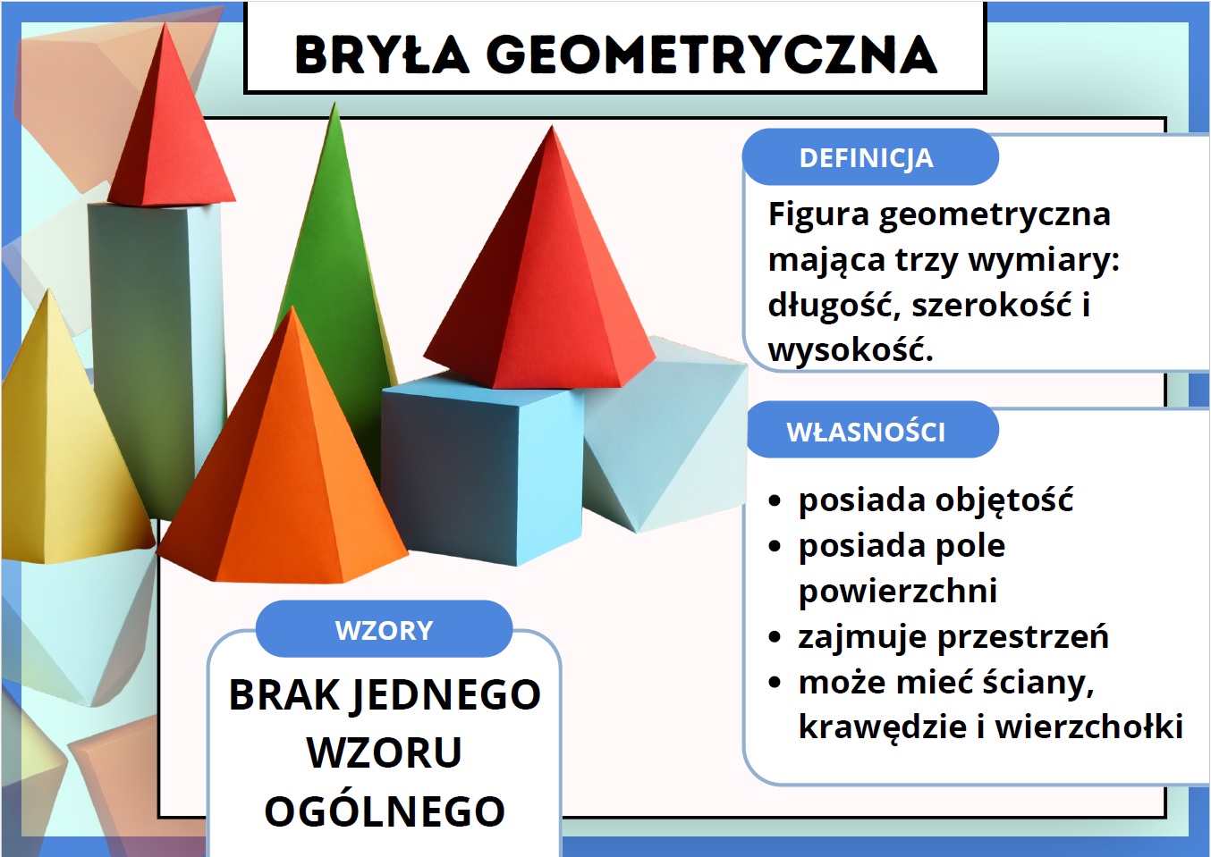 Figury przestrzenne to bryły geometryczne, które mają trzy wymiary: długość, szerokość i wysokość. Oznacza to, że zajmują określoną przestrzeń i mają objętość.