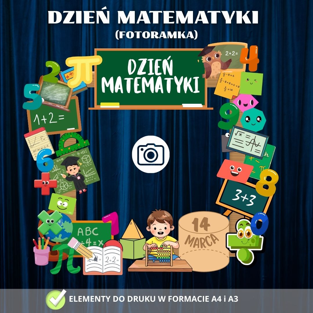 W skład zestawu wchodzi komplet elementów do wydruku, umożliwiający stworzenie edukacyjnej i dekoracyjnej ramy o tematyce królowej nauk, idealnej do świętowania Międzynarodowego Dnia Matematyki oraz liczby Pi.
