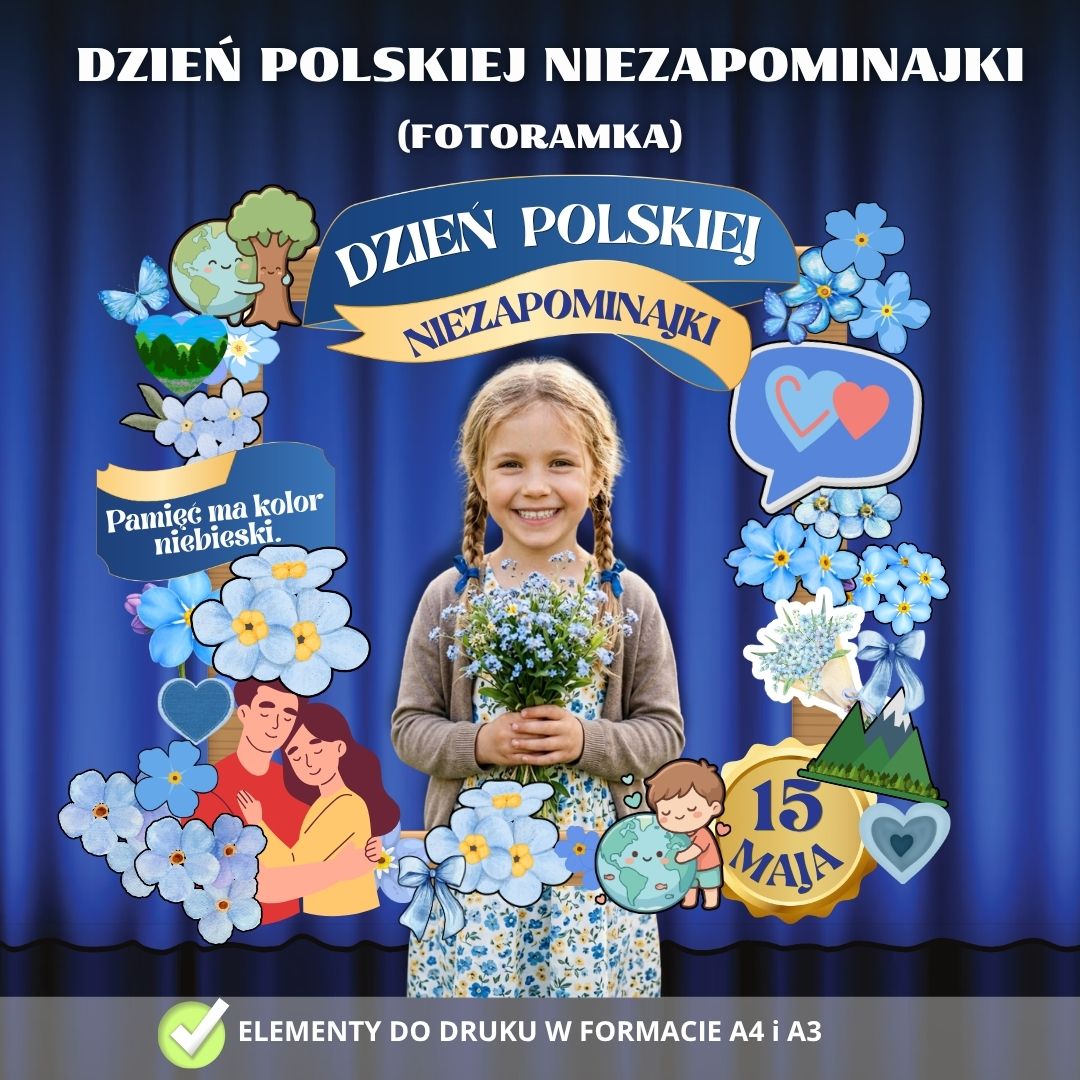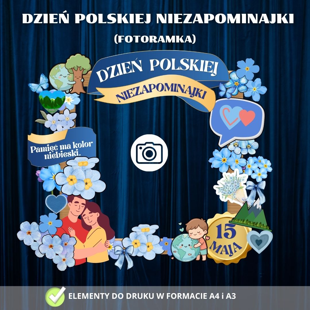 - Kącik Fotograficzny: Atrakcyjny rekwizyt do zdjęć pamiątkowych podczas szkolnych i przedszkolnych obchodów Dnia Niezapominajki.