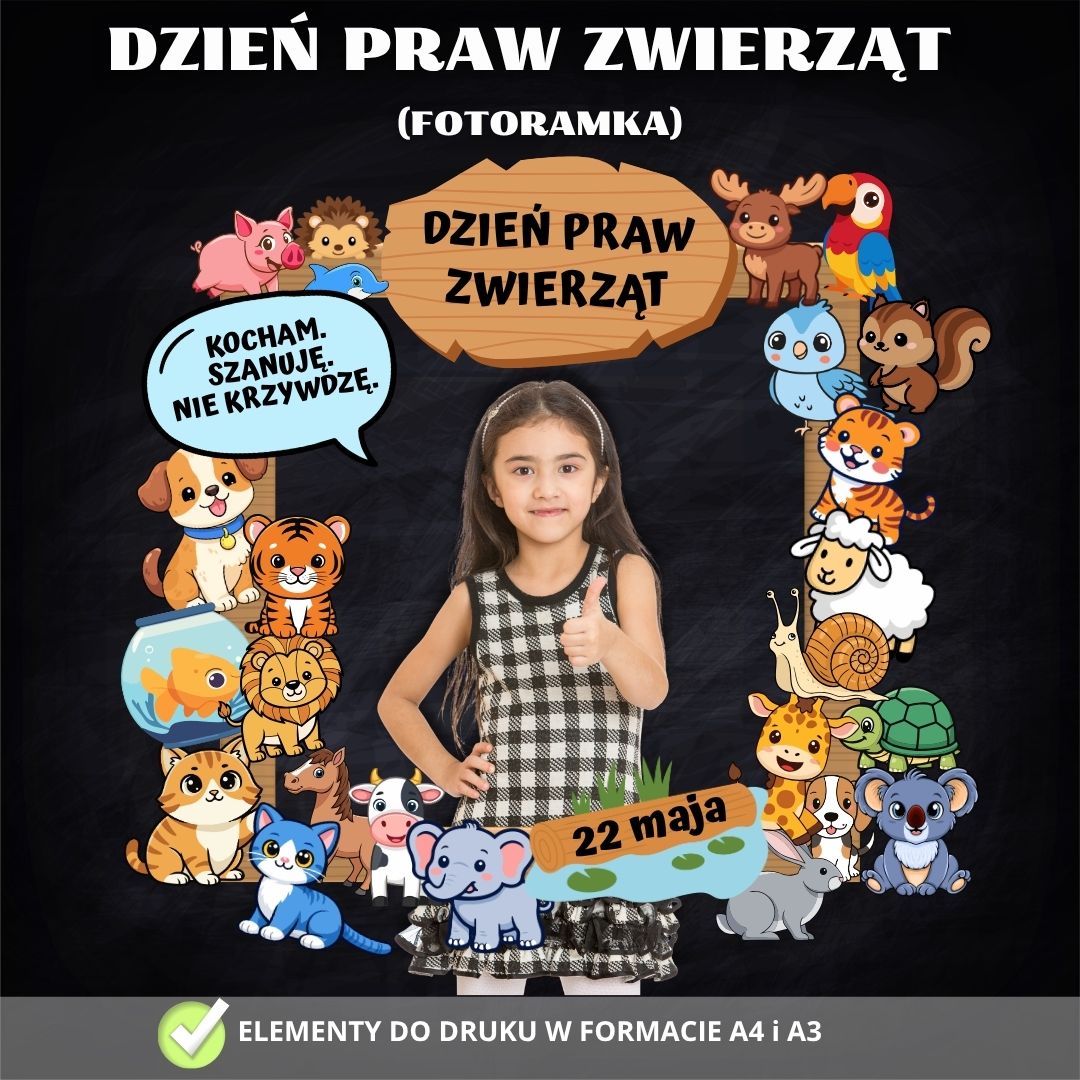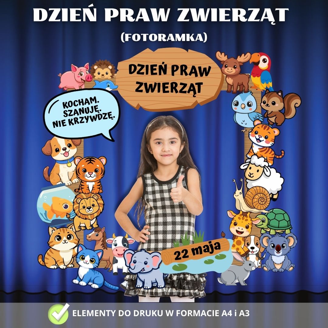 - Kącik Fotograficzny: Atrakcyjny rekwizyt do zdjęć pamiątkowych podczas szkolnych i przedszkolnych obchodów Dnia Praw Zwierząt.