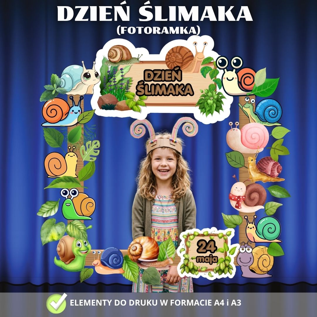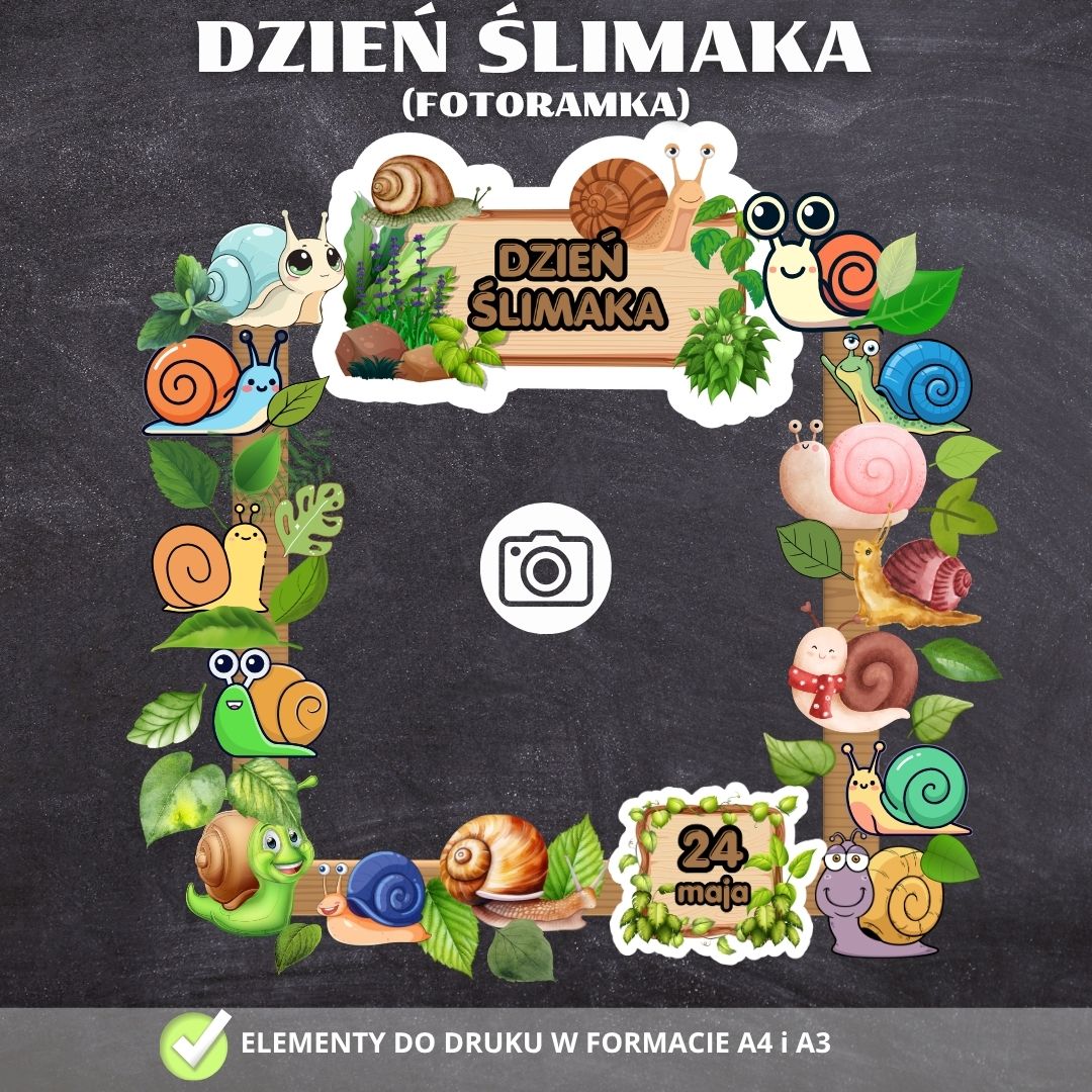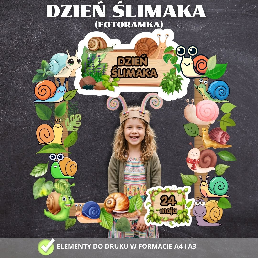 W skład zestawu wchodzi komplet elementów do wydruku, umożliwiający stworzenie radosnej i kolorowej ramy o tematyce przyrodniczej, idealnej do upamiętnienia obchodów Dnia Ślimaka w przedszkolu, szkole czy świetlicy.