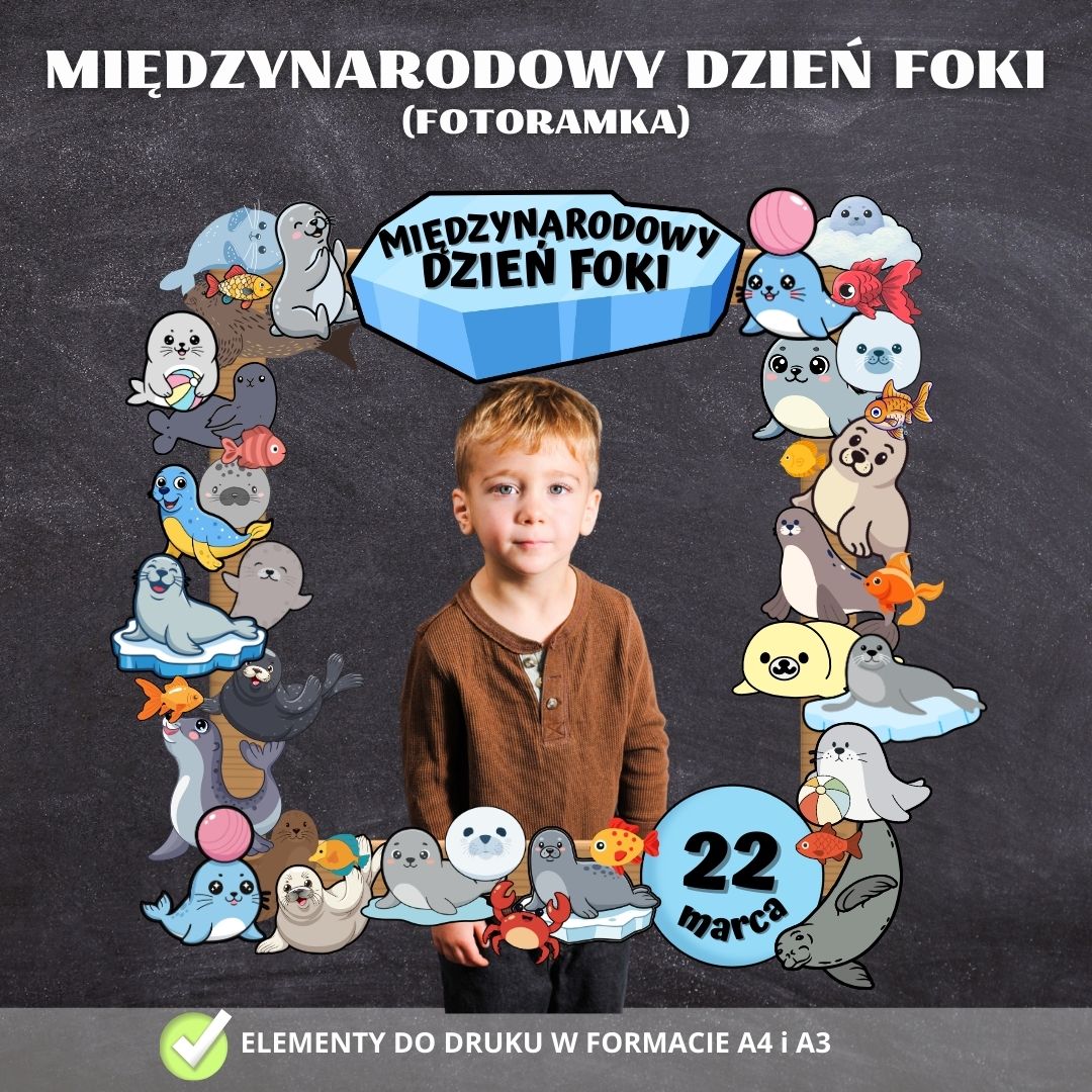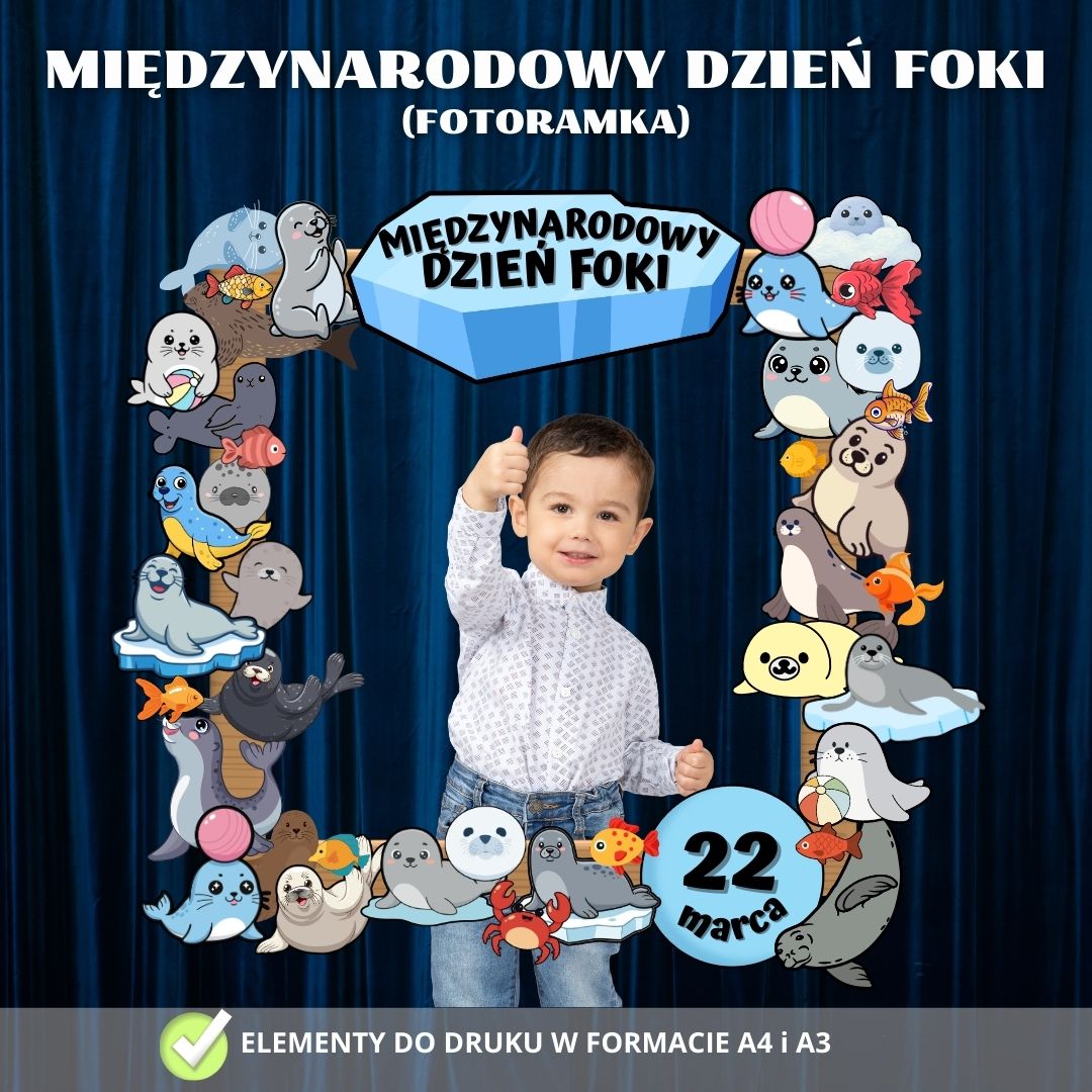 W skład zestawu wchodzi komplet elementów do wydruku, umożliwiający stworzenie dekoracyjnej ramy o tematyce morskiej z okazji Międzynarodowego Dnia Foki, w radosnym i bajkowym wydaniu.