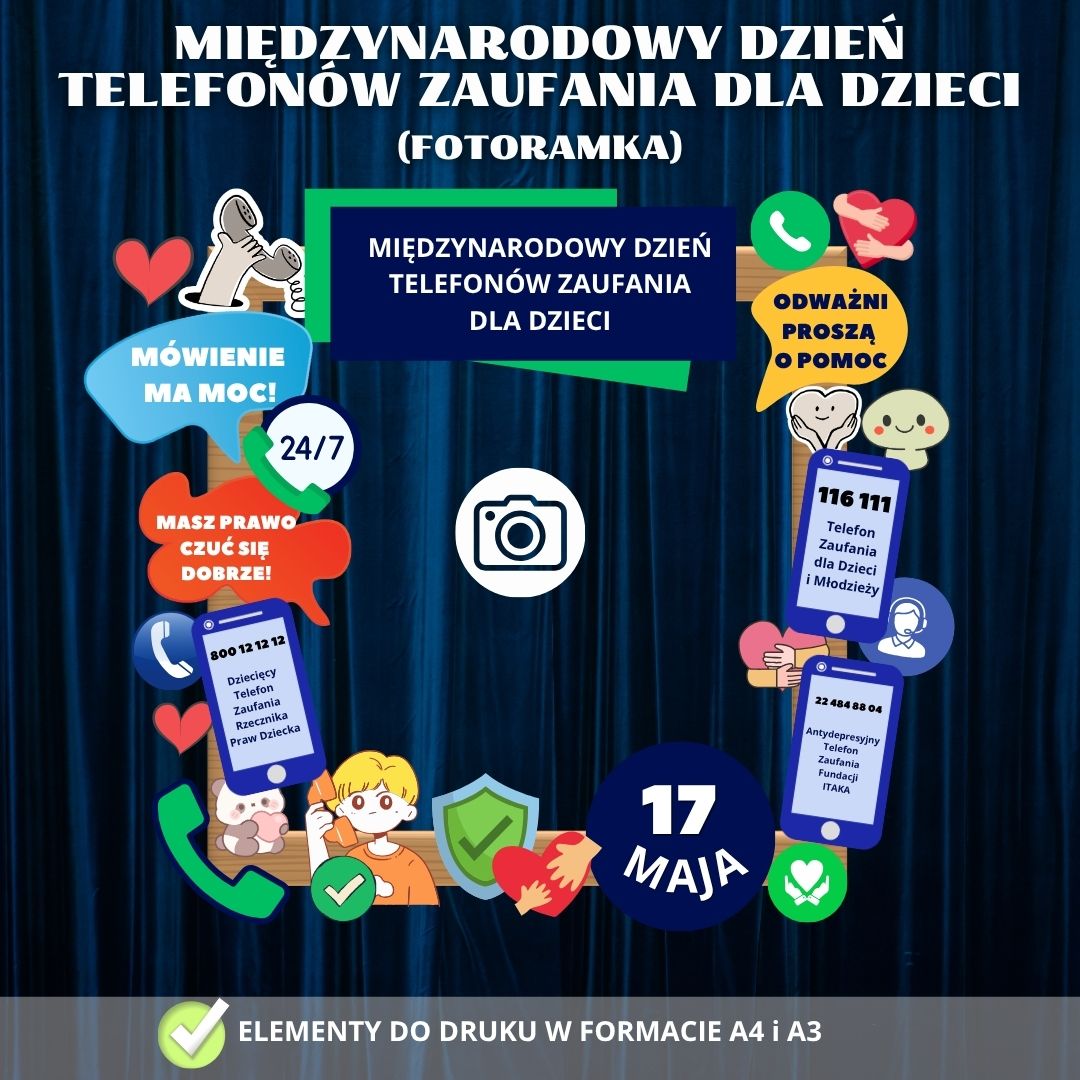 - Kącik Fotograficzny: Atrakcyjny rekwizyt do zdjęć pamiątkowych podczas szkolnych i przedszkolnych obchodów Dnia Telefonów Zaufania.