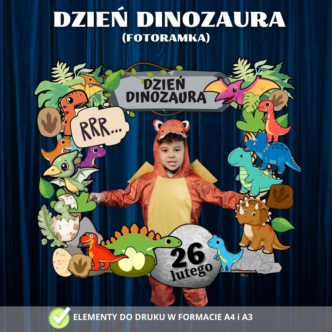 W skład zestawu wchodzi komplet elementów do wydruku (90 stron A4), umożliwiający stworzenie efektownej ramy o tematyce związanej z Międzynarodowym Dniem Dinozaura.