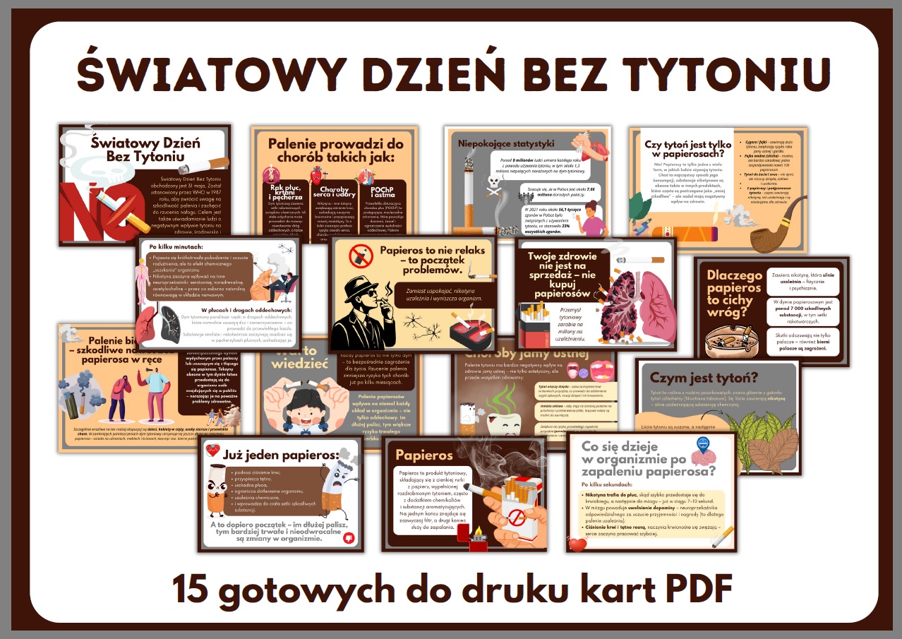 👉Przygotowaliśmy dla Waszych uczniów świetną gazetkę szkolną: Światowy Dzień Bez Tytoniu –  który obchodzimy 31 maja. Gazetka składa się z aż 15 bogato ilustrowanych kart PDF formatu A4 – gotowych do wydruku.