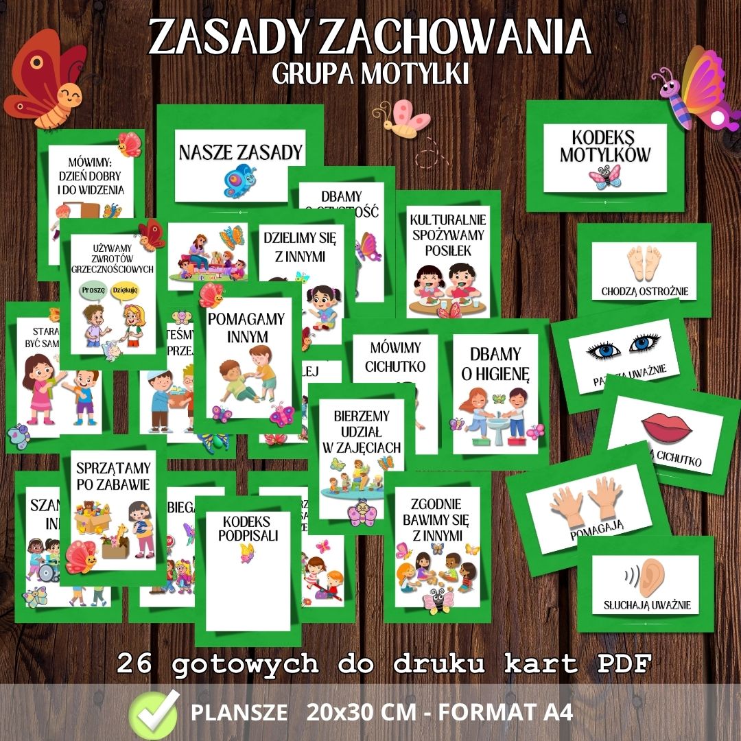 Z pomocą Kodeksu i Zasad Motylków Twoja grupa będzie rozwijać się w atmosferze szacunku, bezpieczeństwa i współpracy – tak lekko i radośnie jak skrzydła motyla. 👉 Pobierz już dziś i zadbaj o dobre zachowanie w swojej grupie – od pierwszego dnia! 🎯 Warto też pobrać: