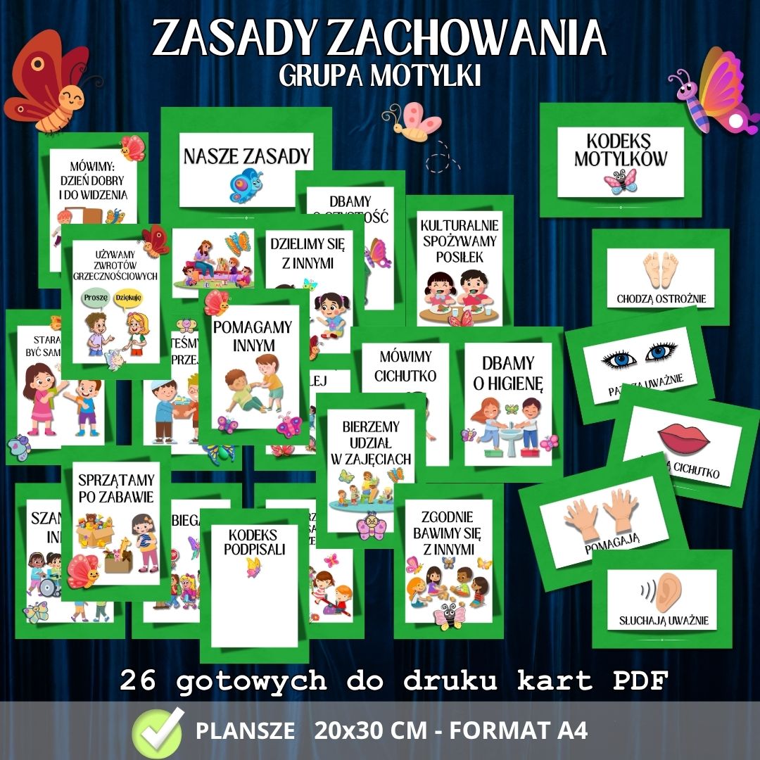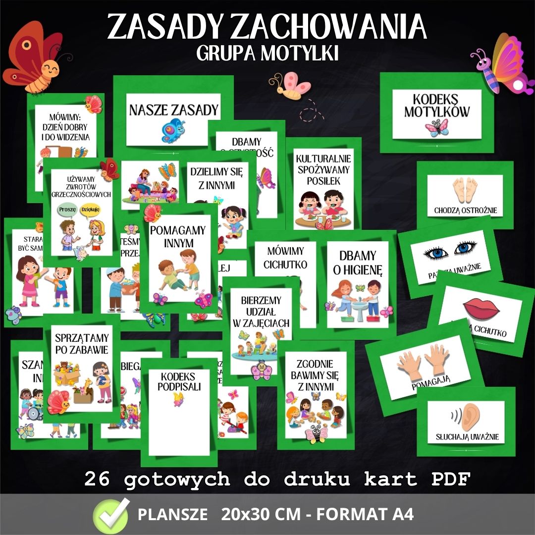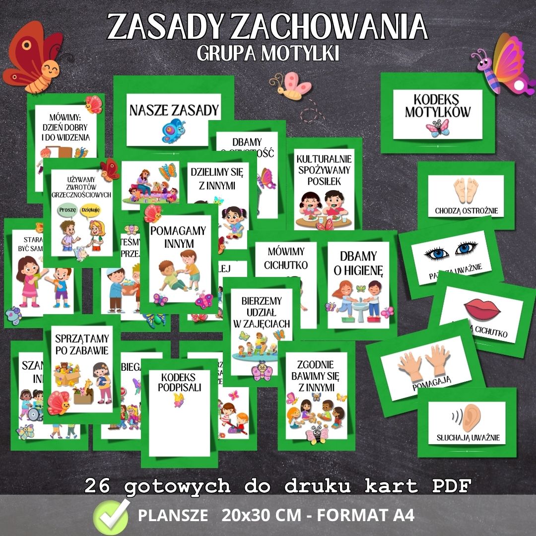 Grupa MOTYLKI – Kodeks i zasady zachowania – (26 plansz)