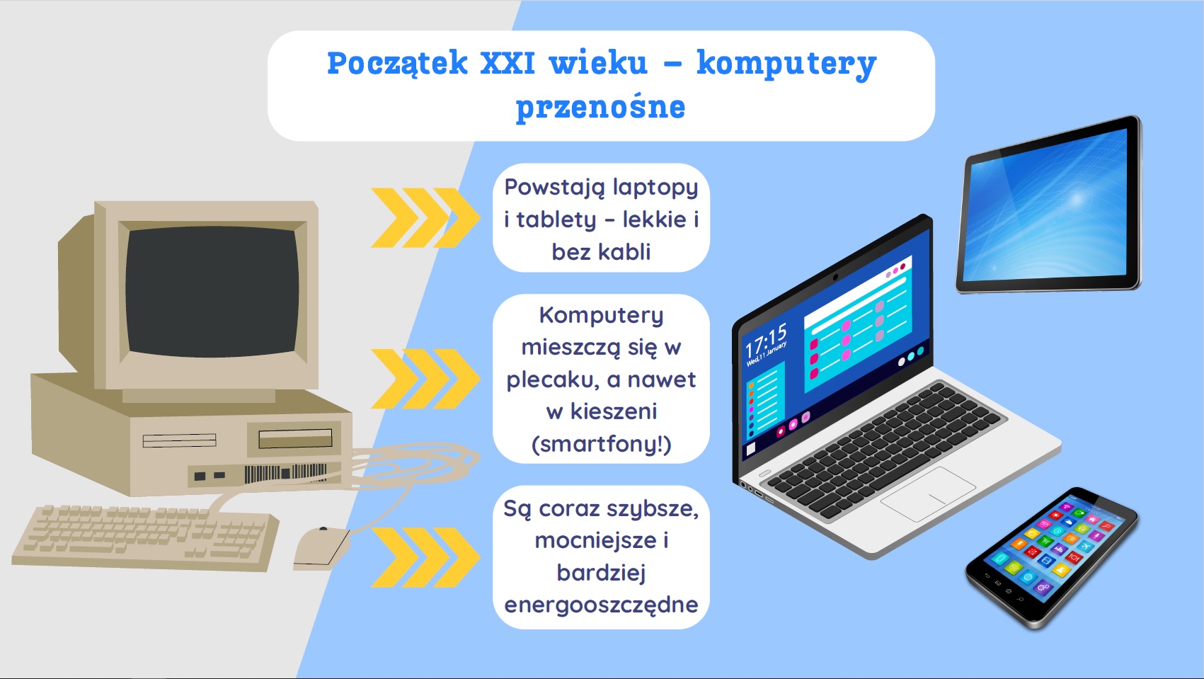 🌍 4. Świadomość wpływu technologii na społeczeństwo – Zrozumienie, jak rozwój komputerów zmienił komunikację, naukę i codzienne życie, pomaga uczniom korzystać z technologii mądrze i odpowiedzialnie.