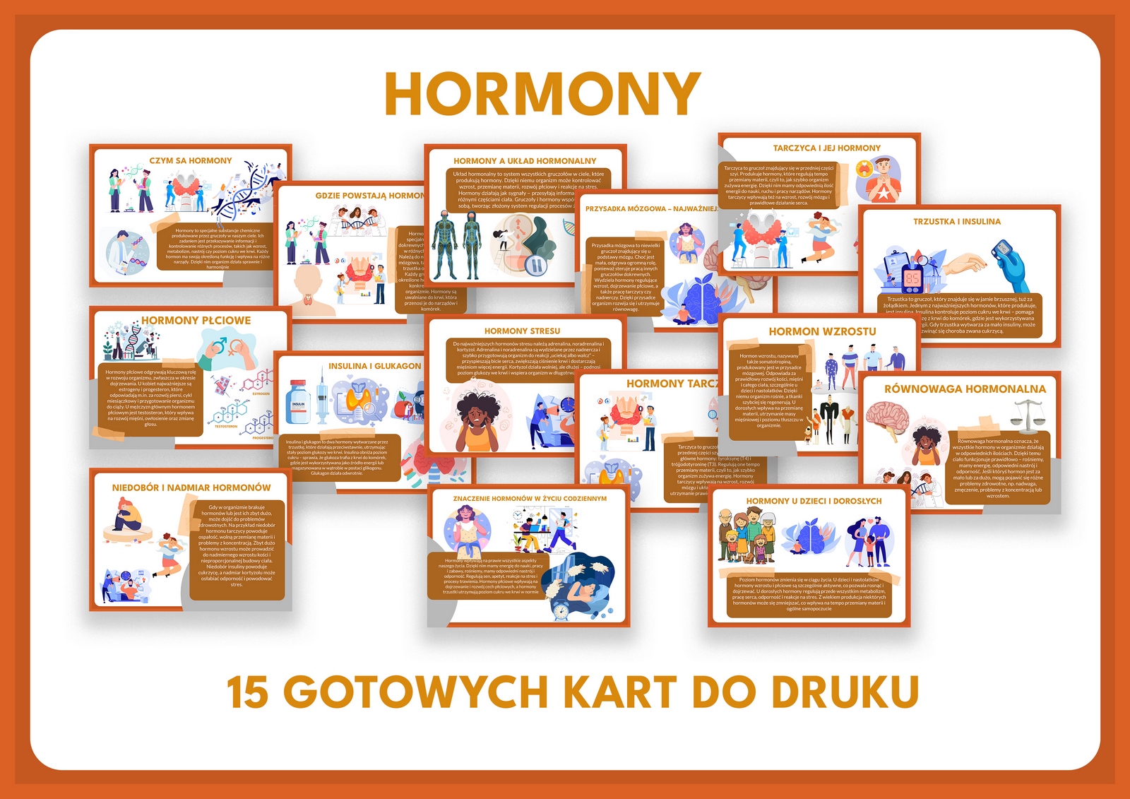 📄 Nasz zestaw edukacyjny „Hormony – niewidzialni dyrygenci naszego ciała” to aż 15 bogato ilustrowanych kart PDF, które w prosty i ciekawy sposób wyjaśniają, czym są hormony, gdzie powstają i jak wpływają na nasz organizm. Każda plansza to kolorowa dawka wiedzy, idealna na szkolną gazetkę, lekcję biologii lub kącik tematyczny. 📚🧬