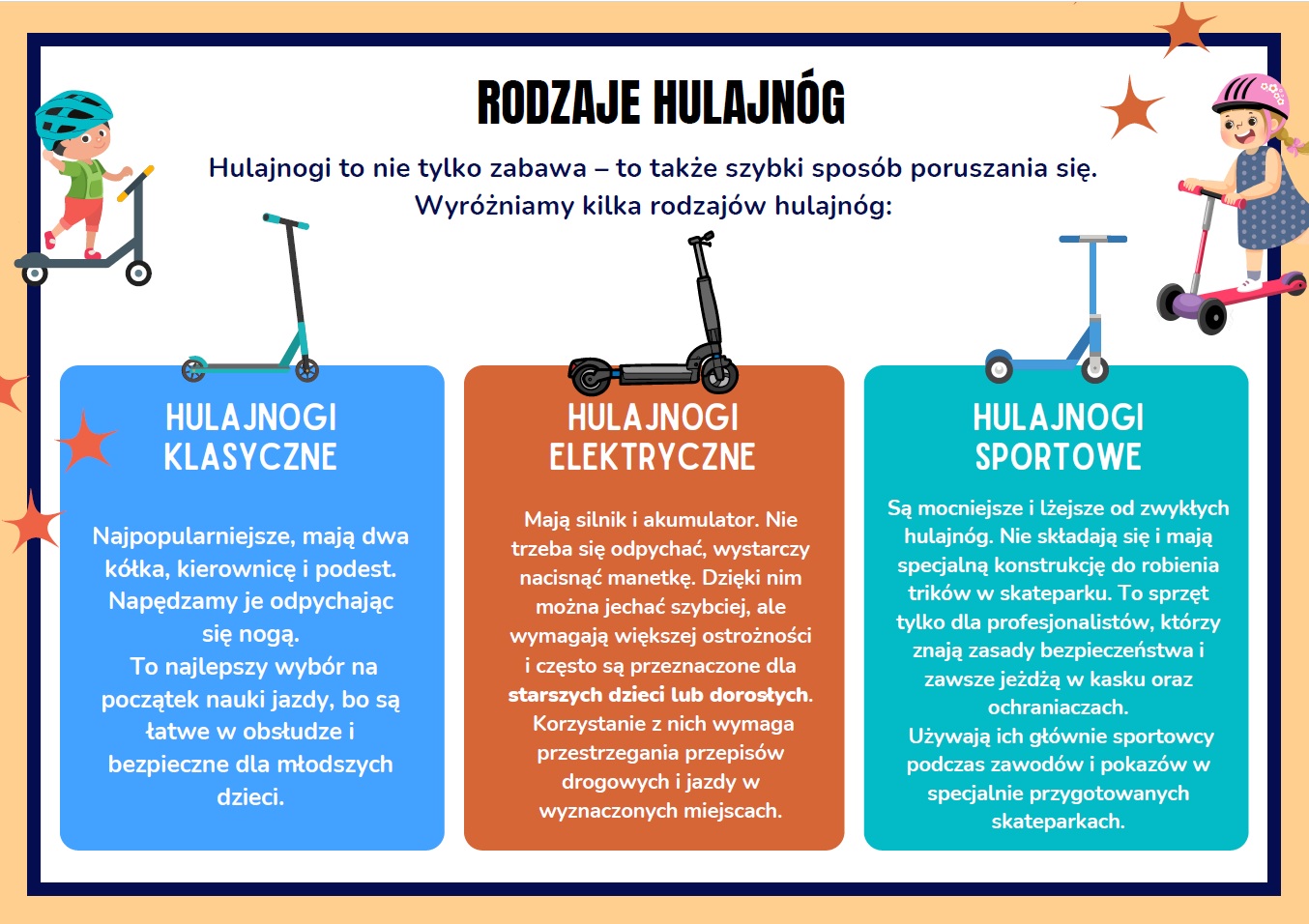 👉 Podsumowując: hulajnogi są wygodnym i ekologicznym środkiem transportu, ale wymagają znajomości zasad bezpieczeństwa. Dlatego tak ważne jest, by młodzież wiedziała, jak korzystać z nich odpowiedzialnie – dla własnego bezpieczeństwa i bezpieczeństwa innych i w tym właśnie pomoże uczniom nasza gazetka! 🙂
