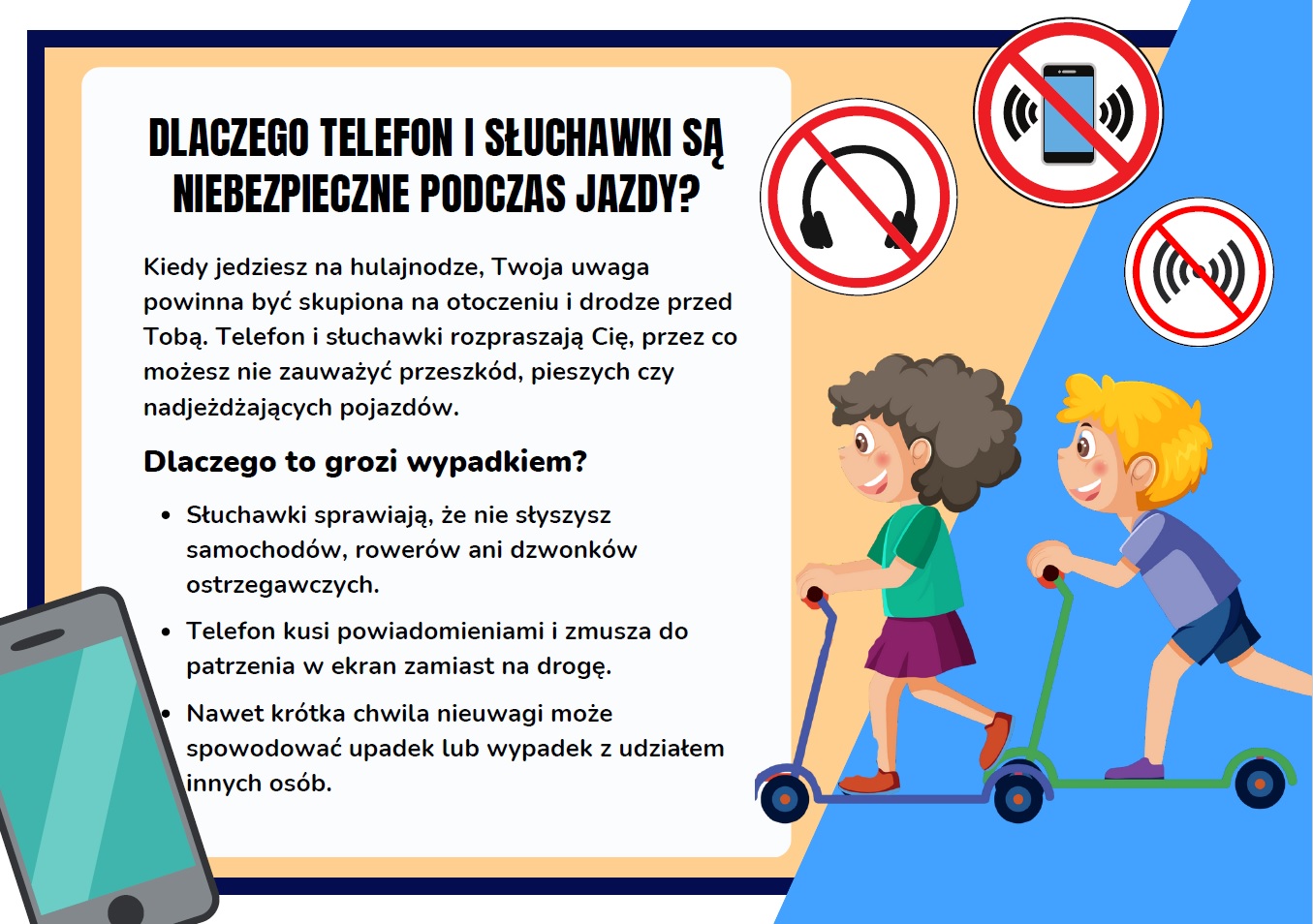 - Odpowiedzialne korzystanie z technologii – hulajnogi elektryczne mają coraz większe osiągi, a brak świadomości ograniczeń technicznych czy przepisów zwiększa ryzyko niebezpiecznych sytuacji.