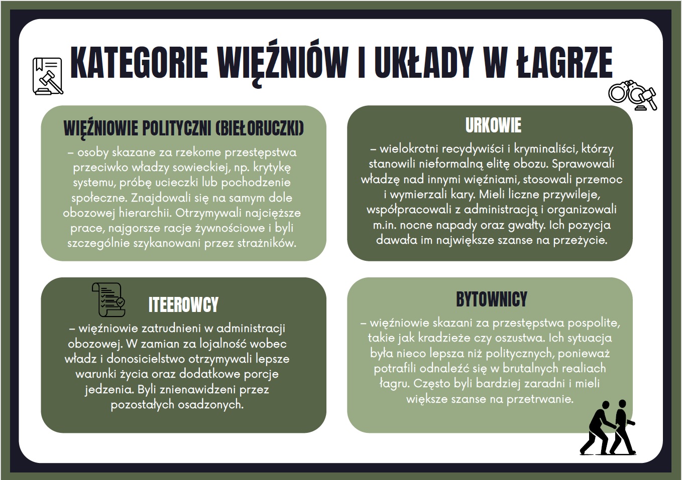 • ✅ Kategorie więźniów i układy w łagrze (2 strony)