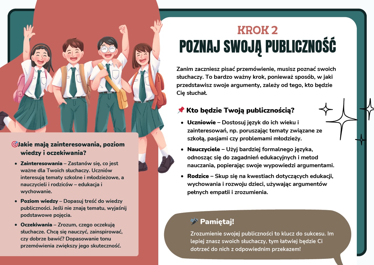 ✅ Krok 6: Ćwicz wygłaszanie przemówienia oraz inne ciekawe karty na temat pisania przemówień!