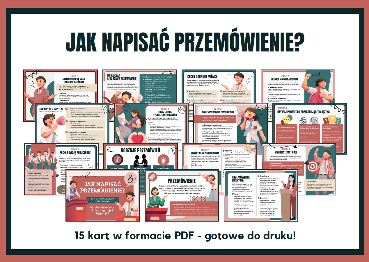 👉Pobierz naszą edukacyjną gazetkę szkolną: Jak napisać przemówienie. Gazetka składa się z aż 15 starannie przygotowanych, bogato ilustrowanych kart PDF formatu A4, gotowych do natychmiastowego wydruku.