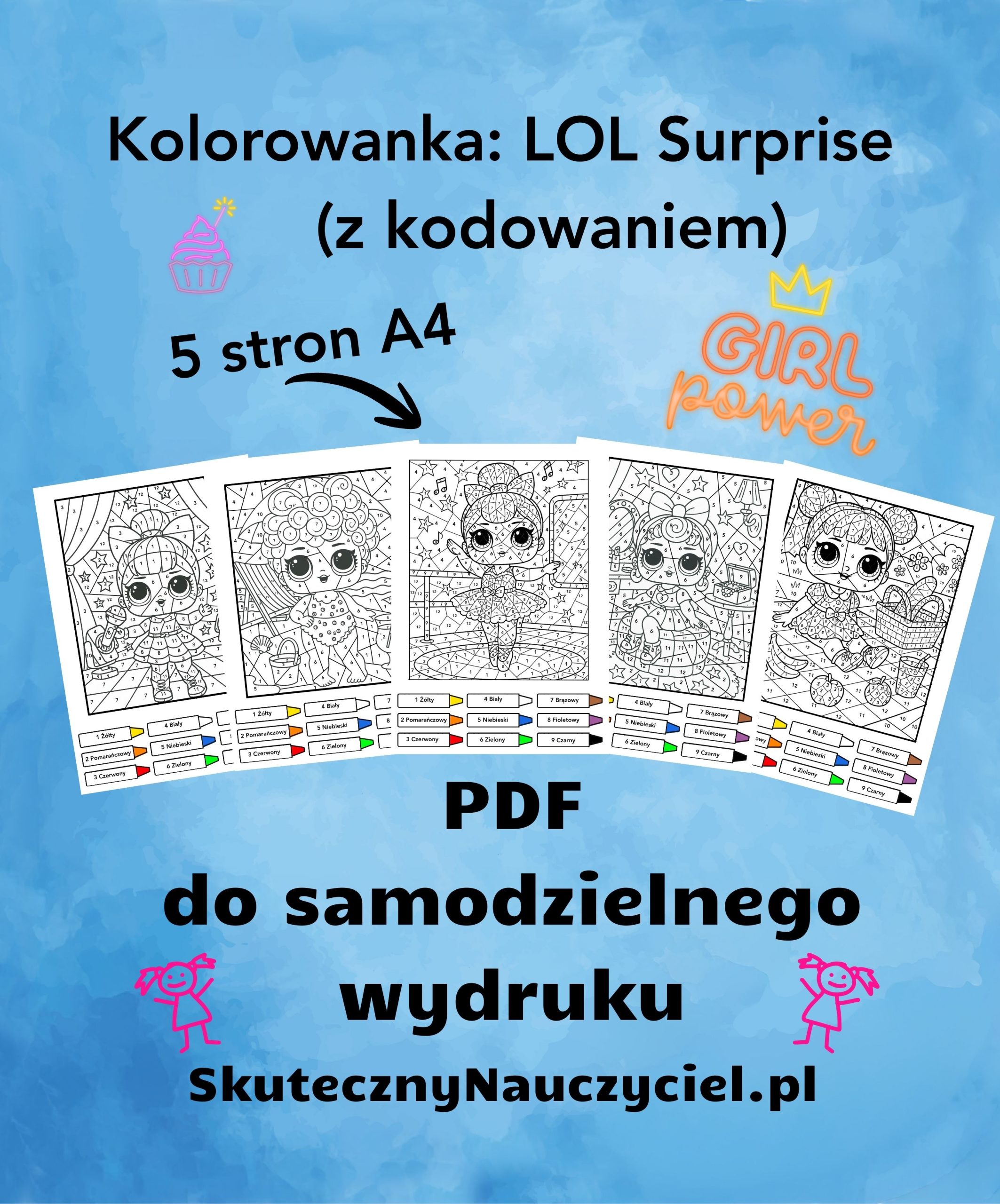 Kolorowanka: LOL SURPRISE (z kodowaniem) – 5 sztuk A4