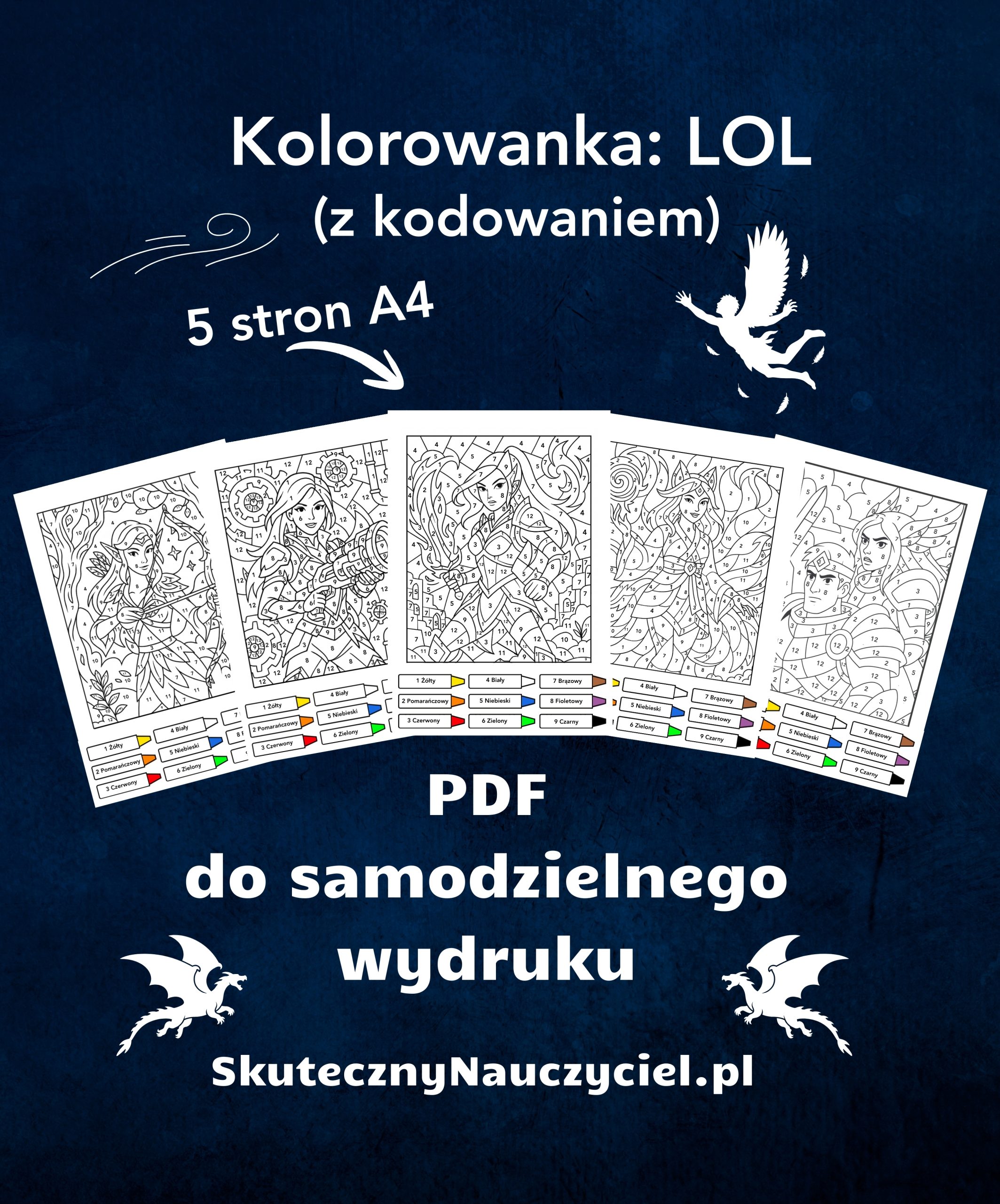 Kolorowanka: LOL (z kodowaniem) – 5 sztuk A4