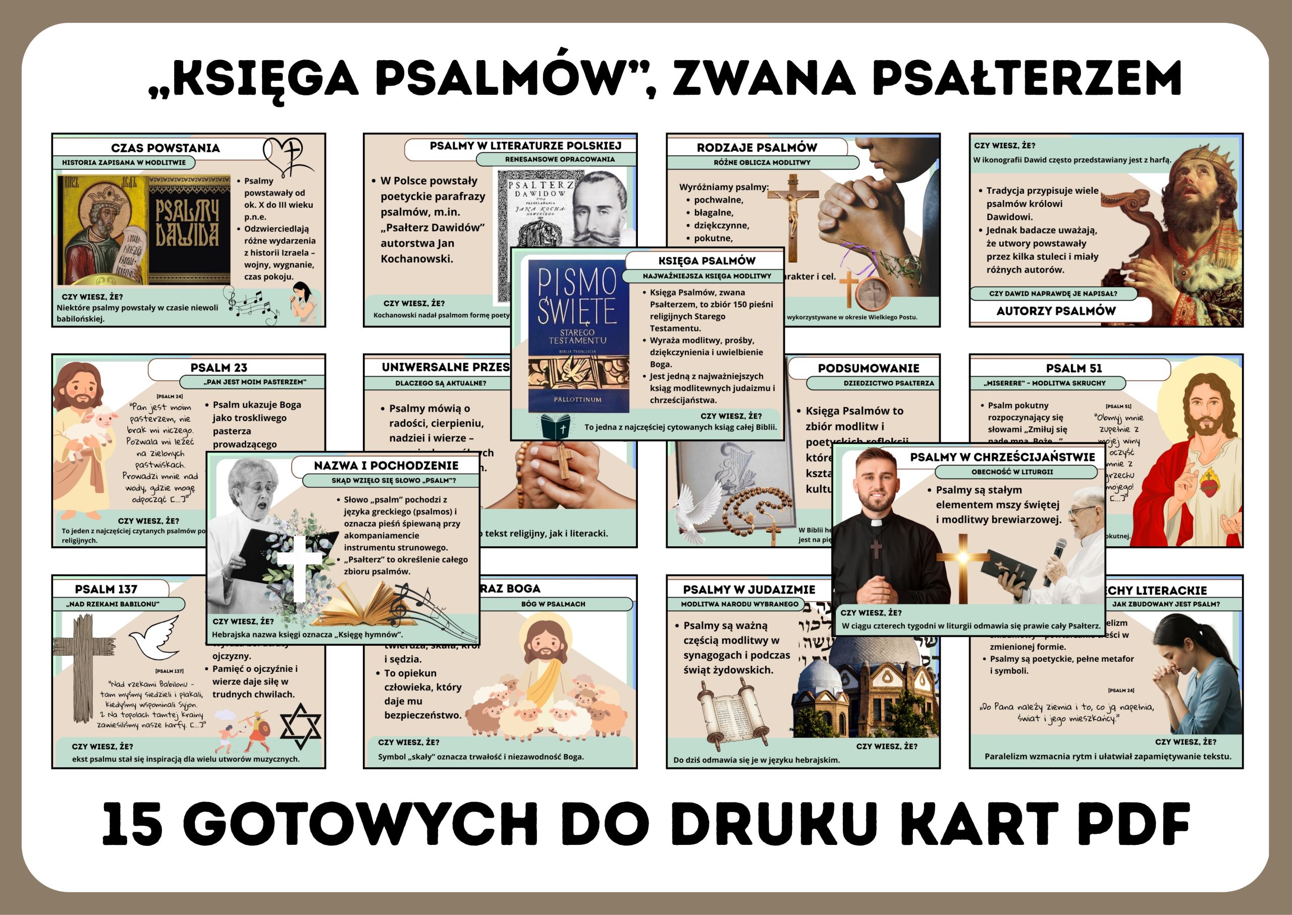 📖✨ Księga Psalmów – Psałterz – wyjątkowa gazetka szkolna w formacie PDF (aż 15 kart!) ✨📖 Jeśli szukasz gotowego materiału, który w przystępny i atrakcyjny sposób przybliży uczniom treść i znaczenie Księga Psalmów? to ten zestaw to idealne rozwiązanie na lekcje języka polskiego, religii oraz historii kultury!
