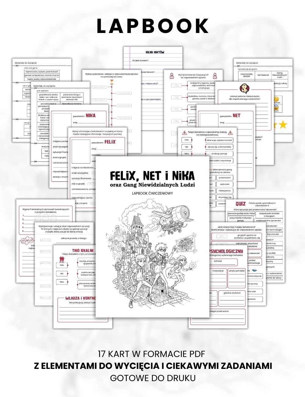 Mój lapbook pozwala uczniom aktywnie analizować fabułę, śledzić intrygę i porządkować informacje w atrakcyjny, wizualny sposób. Zamiast zwykłych notatek powstaje przemyślane, angażujące opracowanie książki.