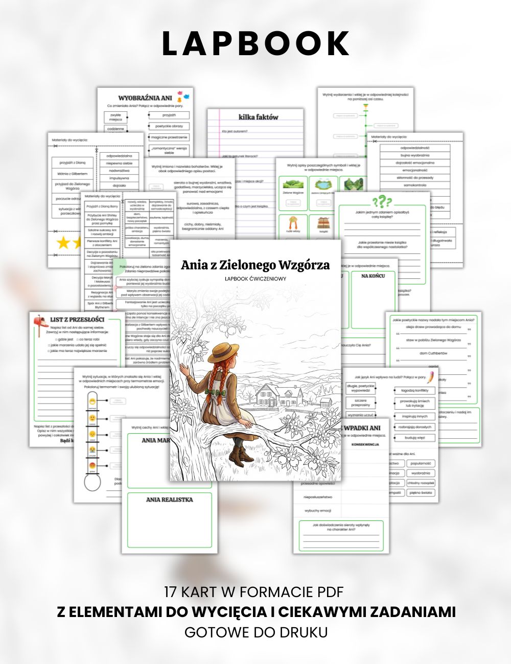 Lapbook lekturowy: Ania z Zielonego Wzgórza – 17 kart PDF – karty pracy