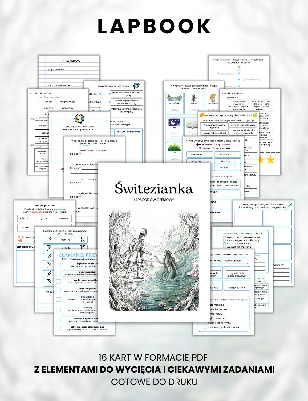 Jak w ciekawy i uporządkowany sposób omówić z uczniami „Świteziankę”? Lapbook to doskonałe narzędzie do pracy z balladą romantyczną – pomaga uczniom zrozumieć symbolikę, nastrój i przesłanie utworu, a jednocześnie angażuje ich w aktywną, twórczą pracę. Zamiast schematycznych notatek powstaje czytelne, wizualne opracowanie lektury.