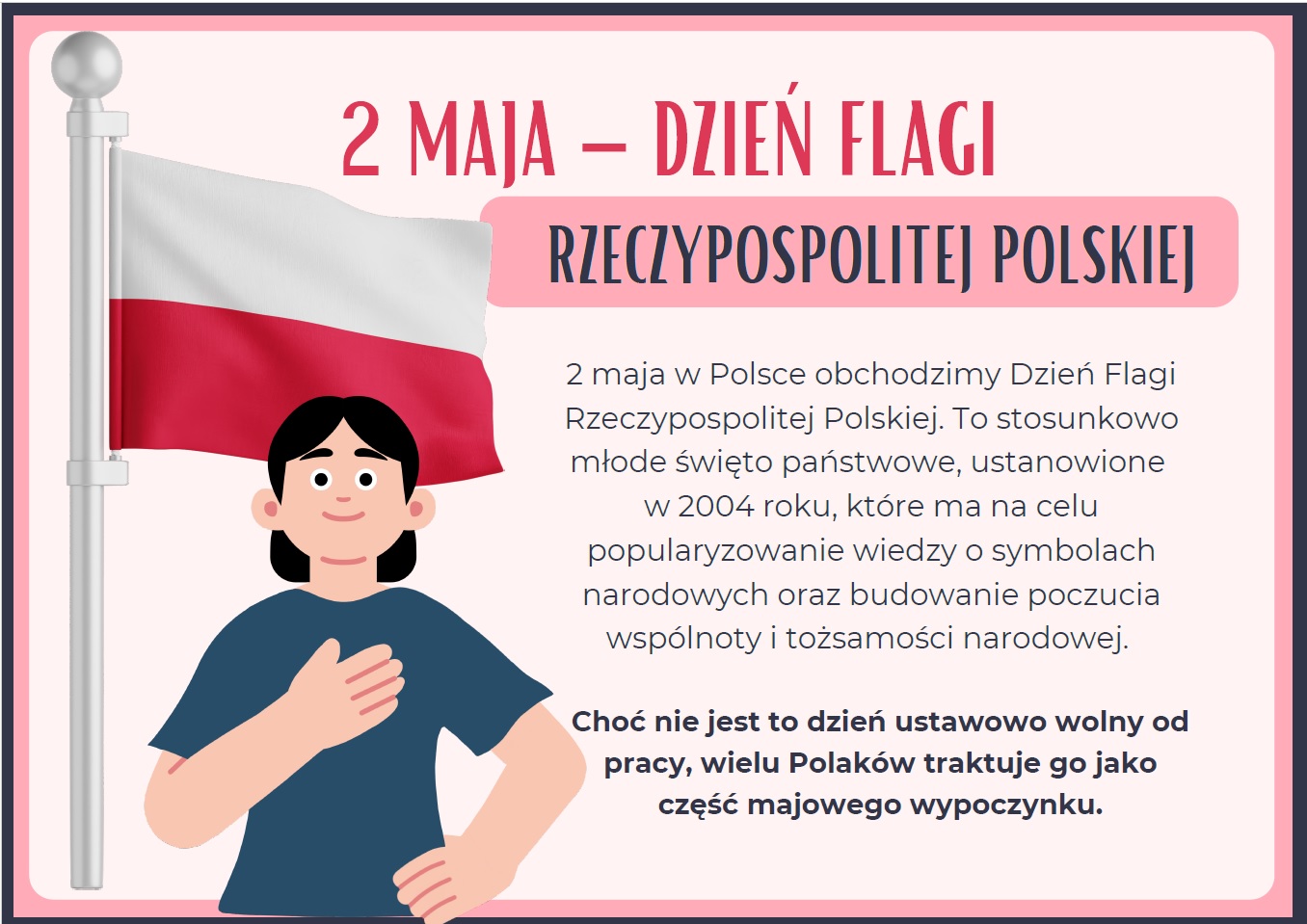 • 2 maja to Dzień Flagi Rzeczypospolitej Polskiej. W tym dniu szczególnie podkreśla się znaczenie polskich barw narodowych i szacunek do flagi.