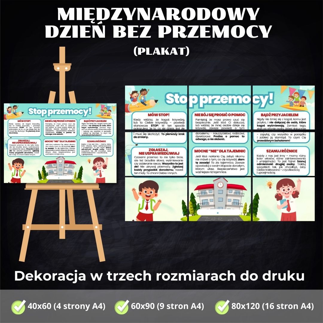 👉 Szukasz wartościowej dekoracji na Międzynarodowy Dzień Bez Przemocy, która nie tylko ozdobi Twoją klasę, ale także poruszy ważny temat? Nasz ilustrowany plakat edukacyjny na Międzynarodowy Dzień Bez Przemocy to doskonały materiał, który w prosty i przystępny sposób uczy dzieci empatii, szacunku i przeciwdziałania przemocy.