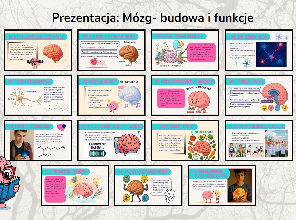 🧠 Poznaj najważniejszy organ człowieka: mózg! 🧠 Jeśli chcesz zaciekawić uczniów fascynującym światem biologii, nasza najnowsza gazetka szkolna o ludzkim mózgu będzie strzałem w dziesiątkę! To aż 15 ilustrowanych kart PDF, które w prosty i atrakcyjny sposób wyjaśniają, jak działa centrum dowodzenia naszego organizmu.