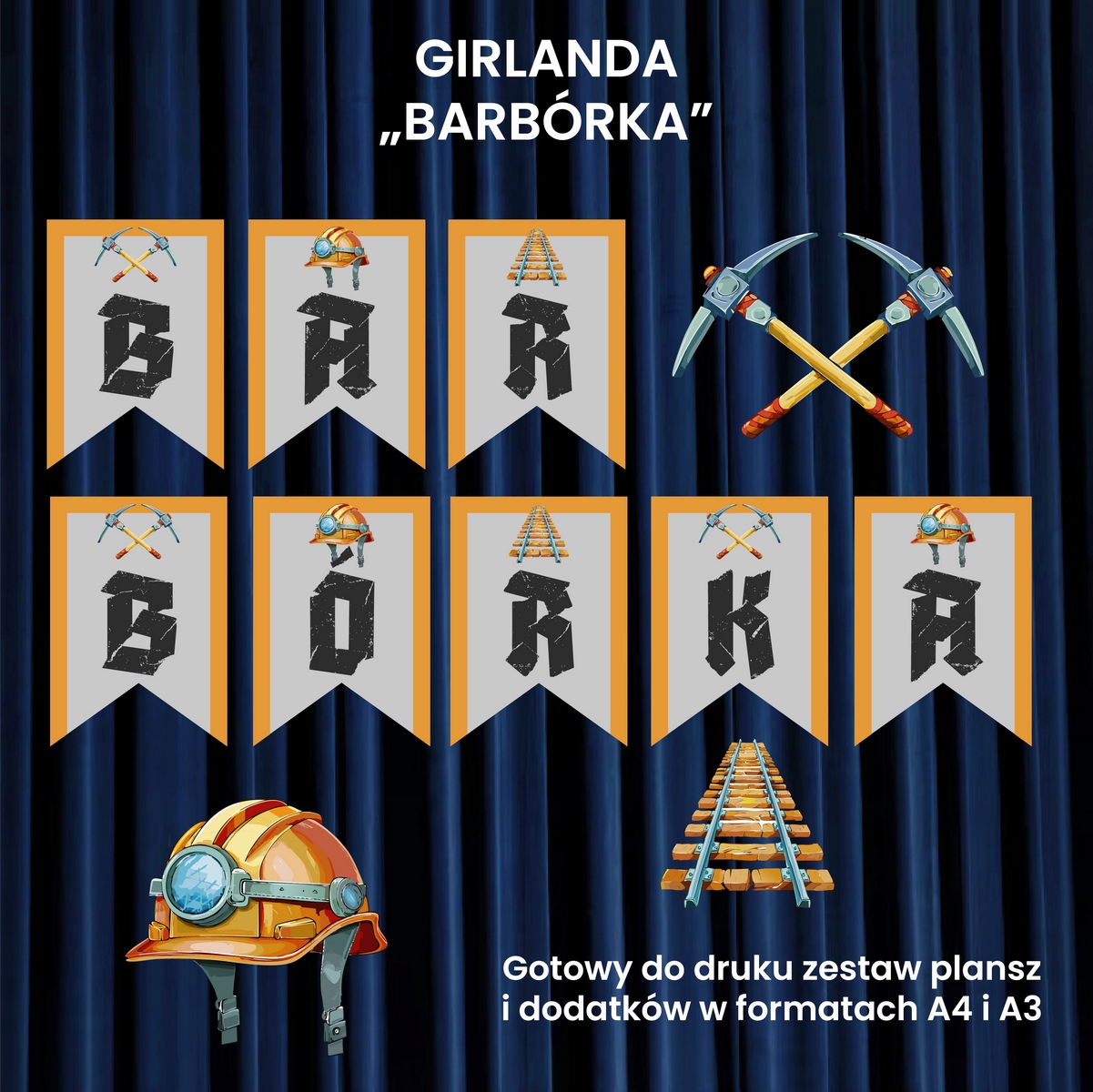 Girlanda „Barbórka” przygotowana jest w formacie PDF – po zakupie możesz ją od razu pobrać i wydrukować. W zestawie znajdują się litery w dwóch rozmiarach: A3 i A4, co daje swobodę w dopasowaniu dekoracji do każdej przestrzeni. Oprócz liter otrzymasz również piękne grafiki tematyczne, które wzbogacą wygląd całej ozdoby.