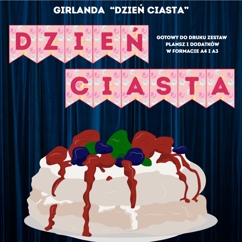 Girlanda z napisem „Dzień Ciasta” to idealna dekoracja do sali lekcyjnej 26 listopada, kiedy obchodzimy to słodkie święto. To świetna okazja, aby porozmawiać z uczniami o tradycjach kulinarnych, ulubionych wypiekach i zdrowych składnikach.