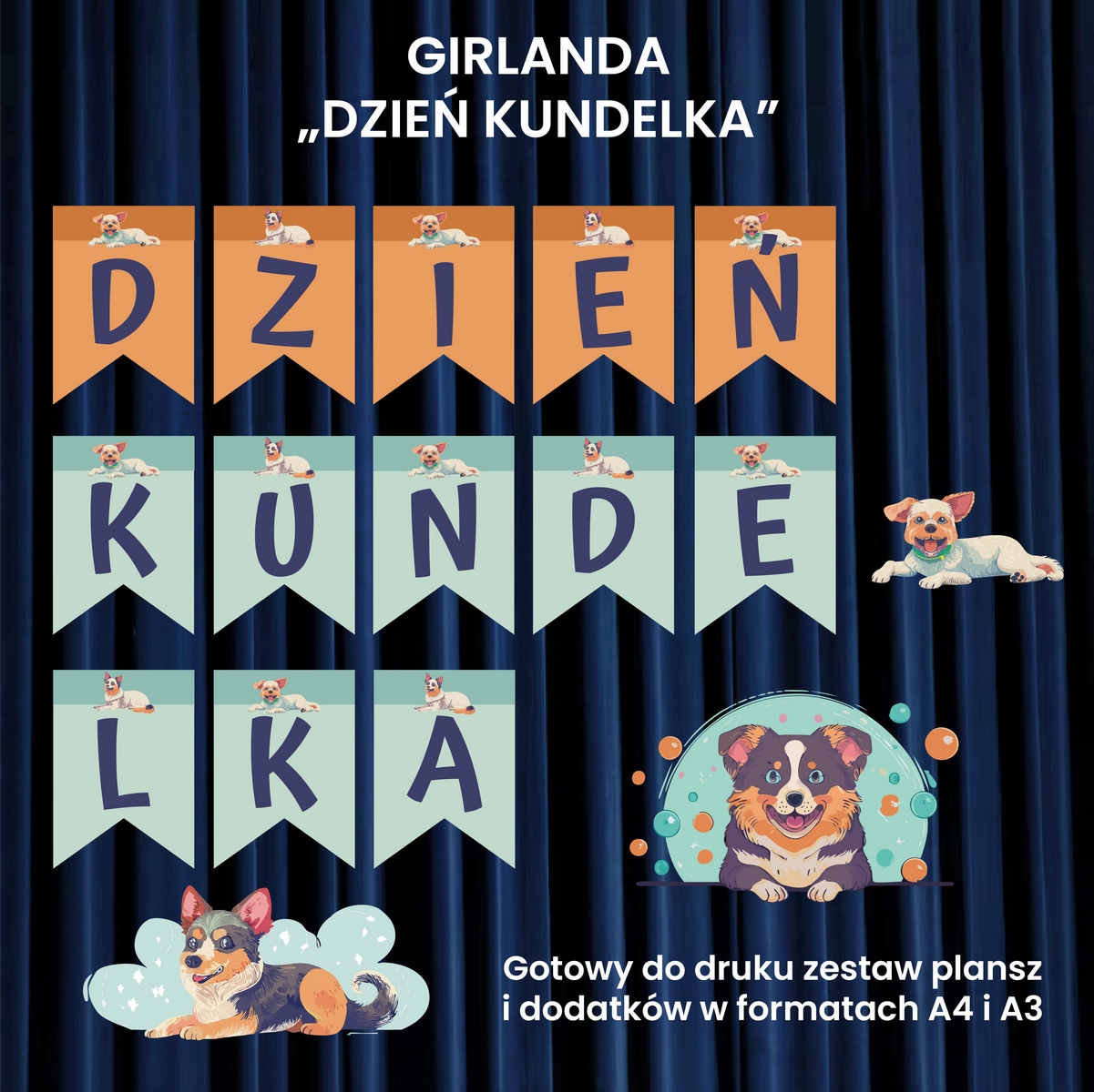 Girlanda z napisem „Dzień Kundelka” to świetna dekoracja do ozdobienia sali lekcyjnej lub przedszkolnej na uroczystość Dnia Kundelka, który obchodzimy 25 października. Wprowadzi do wnętrza radosny, przyjazny klimat i sprawi, że dzieci jeszcze chętniej zaangażują się w obchody tego wyjątkowego dnia poświęconego naszym czworonożnym przyjaciołom.