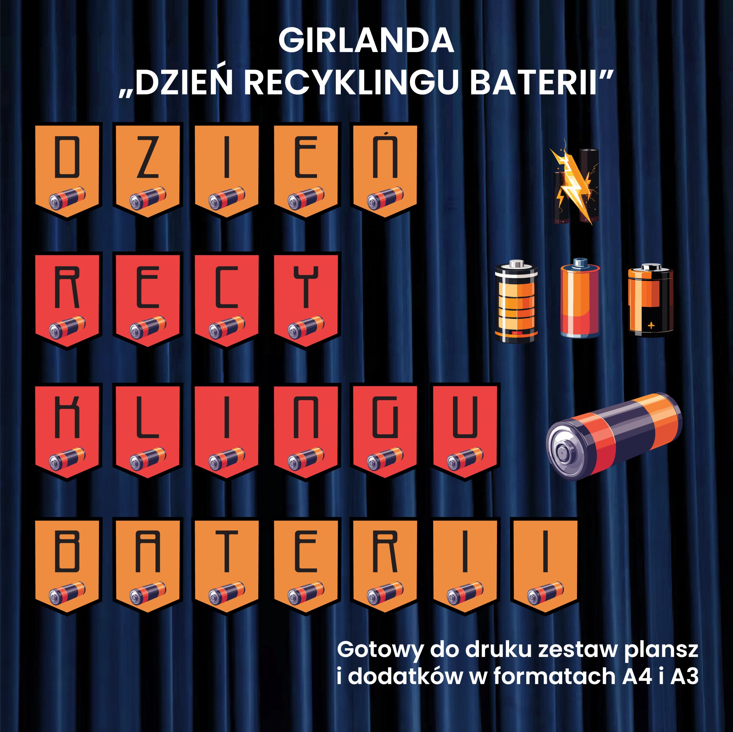 Girlanda z napisem „Dzień Recyklingu Baterii” to świetna dekoracja na wrześniowe obchody tego ważnego ekologicznego dnia. Pomaga uczniom zrozumieć, dlaczego prawidłowa segregacja baterii ma ogromne znaczenie dla środowiska. Takie wydarzenie kształtuje odpowiedzialne postawy i uczy dbania o planetę już od najmłodszych lat.