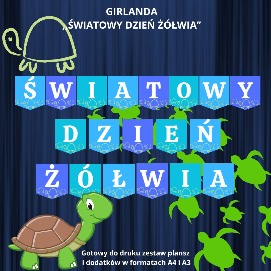 Z girlandą „Dzień Żółwia” Twoja dekoracja będzie nie tylko estetyczna, ale też edukacyjna – i z pewnością przyciągnie uwagę dzieci! 🌿📚🐢