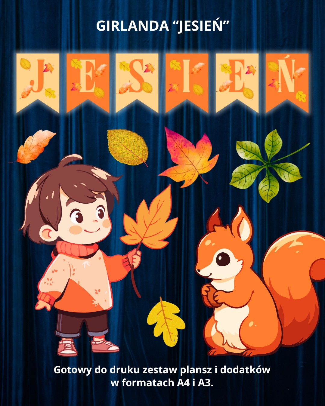 Z tą girlandą Twoja sala nabierze jesiennego charakteru – będzie kolorowo, ciepło i wyjątkowo przytulnie!⚠️Masz swój własny pomysł na napis, lub girlandę? wykorzystaj nasz: Generator napisów do druku, możesz też pobrać naszą najnowszą: gazetkę szkolną o jesieni!