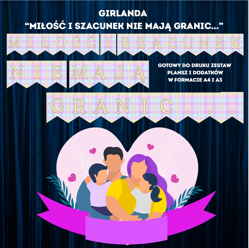 Girlanda z napisem „Miłość i szacunek nie mają granic” to świetna dekoracja do ozdobienia sali lekcyjnej bądź korytarza z okazji Międzynarodowego Dnia Tolerancji, który obchodzimy 16 listopada.