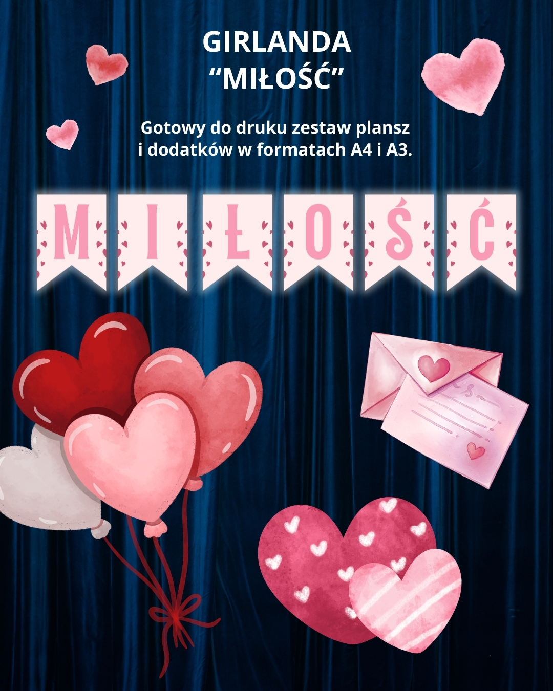 ❤️ Girlanda „Miłość” – gotowa do druku dekoracja, która wprowadzi ciepło i romantyczny nastrój do każdej przestrzeni! Stwórz piękną, pełną uczucia dekorację z gotowym plikiem PDF, który możesz od razu wydrukować i rozwiesić w sali, domu, przedszkolu czy na gazetce walentynkowej.