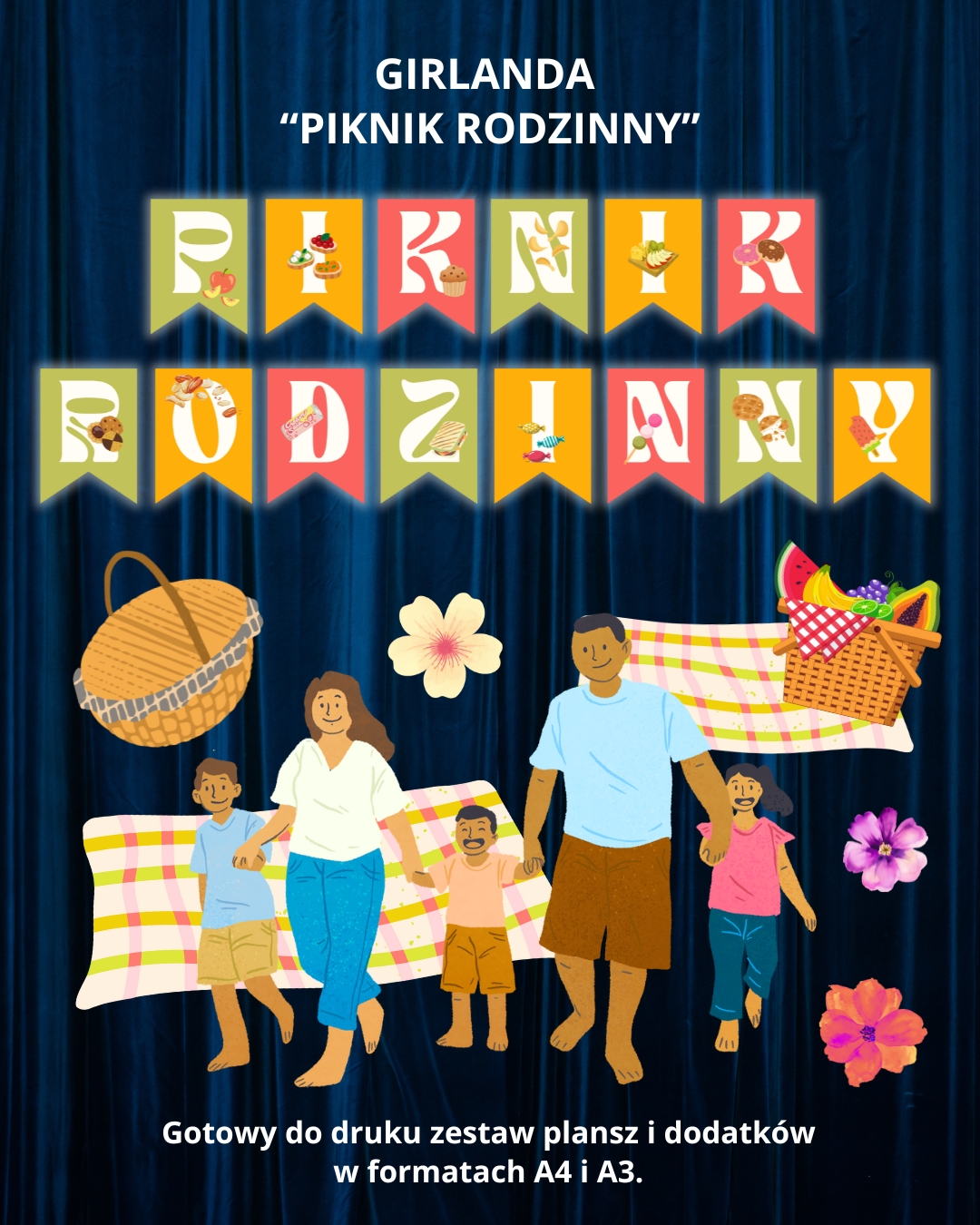 Girlanda „Piknik Rodzinny” została zaprojektowana z myślą o nauczycielach i organizatorach, którzy chcą szybko i efektownie udekorować przestrzeń, w której odbywa się piknik. Niezależnie od tego, czy dekorujesz salę, korytarz czy plenerową scenę — ten napis doda uroku każdemu miejscu.