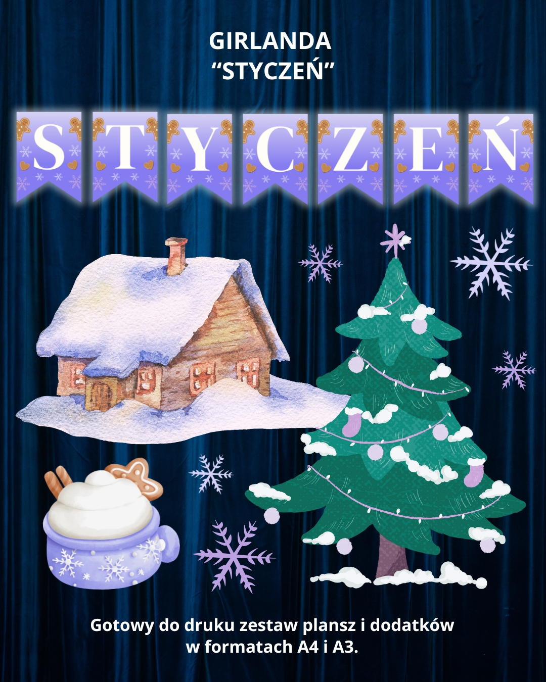 Girlanda z napisem „Styczeń” to idealna dekoracja do ozdobienia sali lekcyjnej lub przedszkolnej, która wprowadzi do wnętrza zimowy, radosny nastrój. Śnieżne motywy i chłodne, ale przyjazne barwy sprawią, że przestrzeń nabierze wyjątkowego charakteru, a dzieci poczują atmosferę zimowych zabaw i noworocznych przygód.