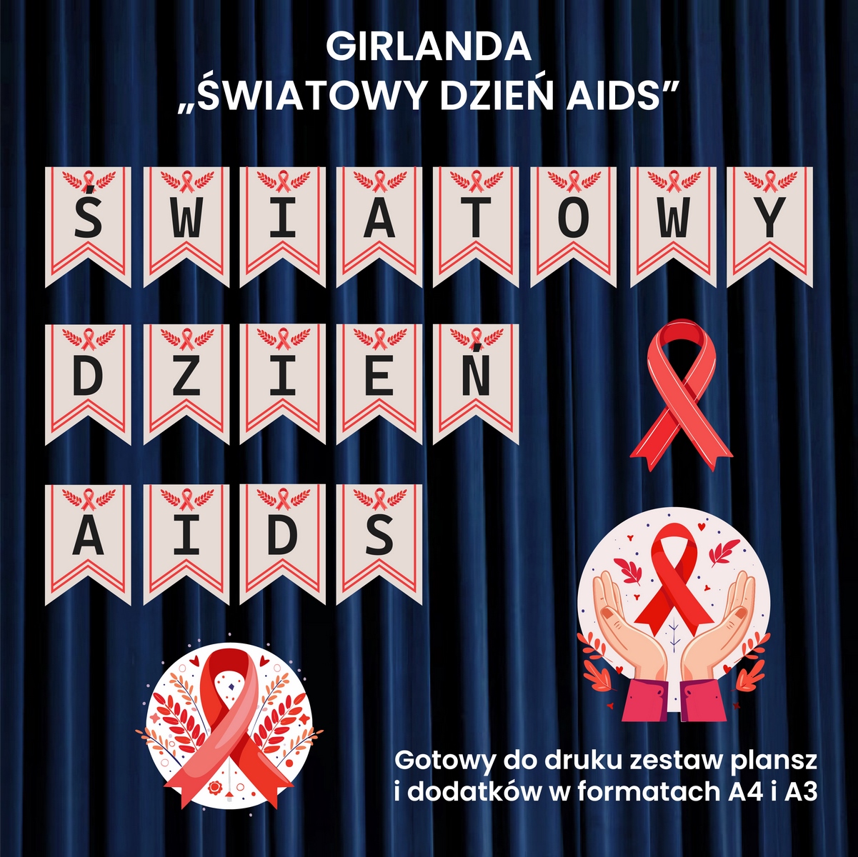 Girlanda z napisem „Światowy Dzień AIDS” to świetna propozycja dekoracji, która sprawdzi się podczas obchodów 1 grudnia – dnia poświęconego profilaktyce zdrowotnej i podnoszeniu świadomości wśród uczniów. To doskonała okazja, by wprowadzić młodzież w temat odpowiedzialnych wyborów i dbania o zdrowie.